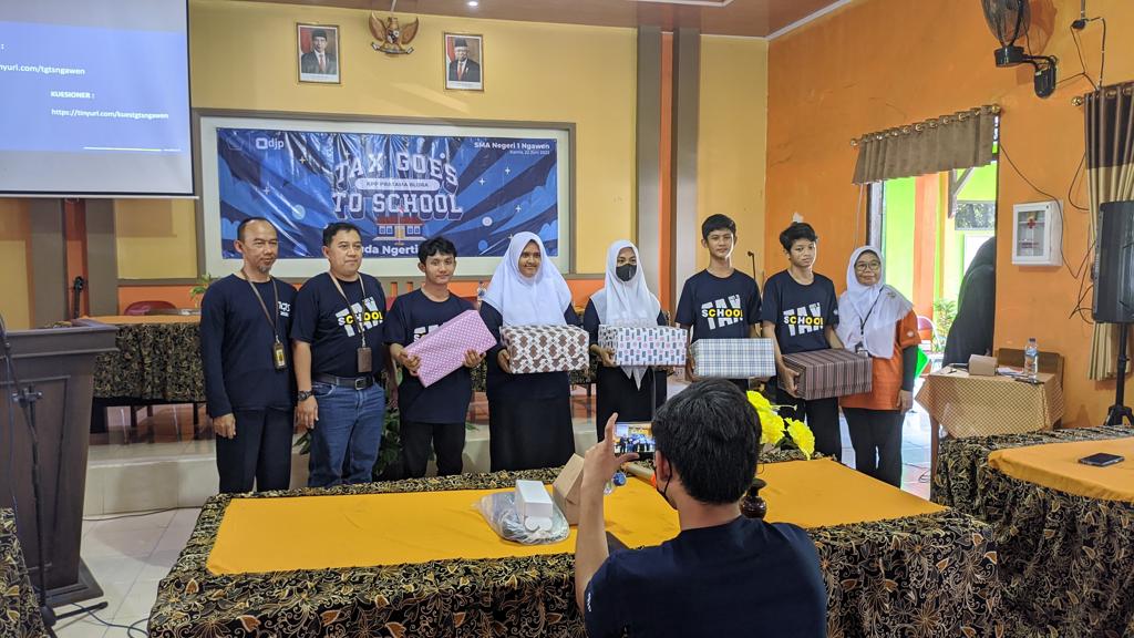 Kantor Pelayanan Pajak (KPP) Pratama Blora bersama Kantor Pelayanan, Penyuluhan, dan Konsultasi Perpajakan (KP2KP) Purwodadi menyelenggarakan kegiatan Tax Goes to School (TGTS) di Sekolah Menengah Atas Negeri (SMAN) 1 Ngawen, Kabupaten Blora (Kamis, 22/6).