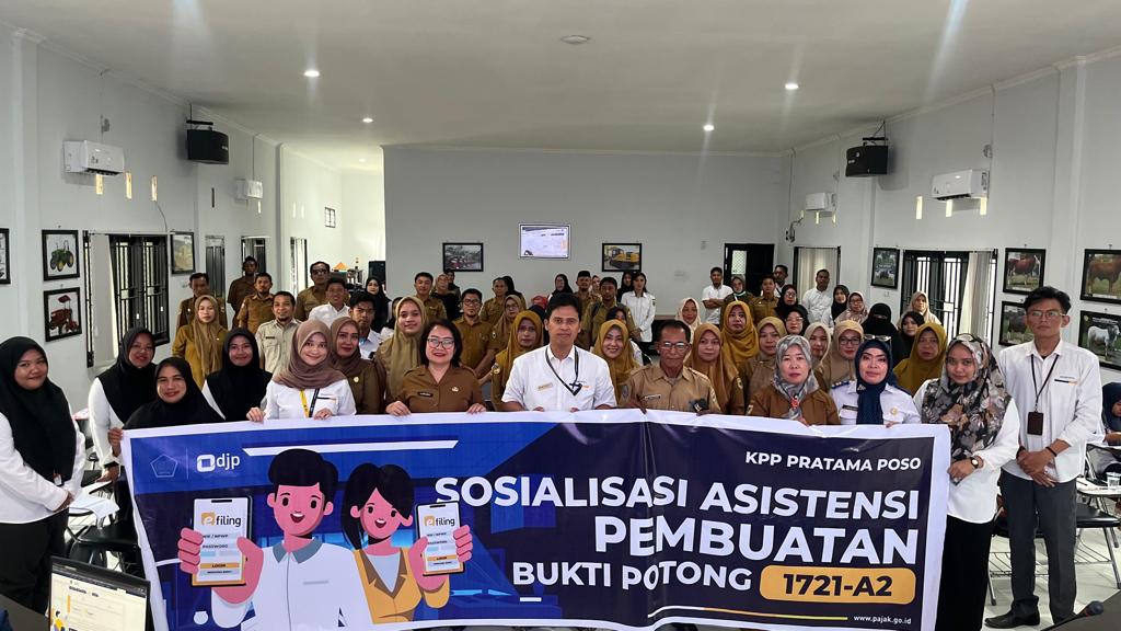 Kantor Pelayanan Pajak (KPP) Pratama Poso mengadakan Sosialisasi Pembuatan Bukti Potong 1721-A2 melalui e-Bupot di Aula Dinas Pertanian, Morowali, Sulawesi Tengah (Senin, 29/1). Sosialisasi ini berfokus pada pemenuhan kewajiban pelaporan Surat Pemberitahuan (SPT), khususnya Aparatur Sipil Negara (ASN) di wilayah Morowali. Acara ini dimulai dari pukul 09.00 s.d. 12.00 WITA yang dihadiri oleh puluhan instansi. Masing-masing instansi diwakili oleh kepala subbagian keuangan yang didampingi oleh bendahara ataupun operator.