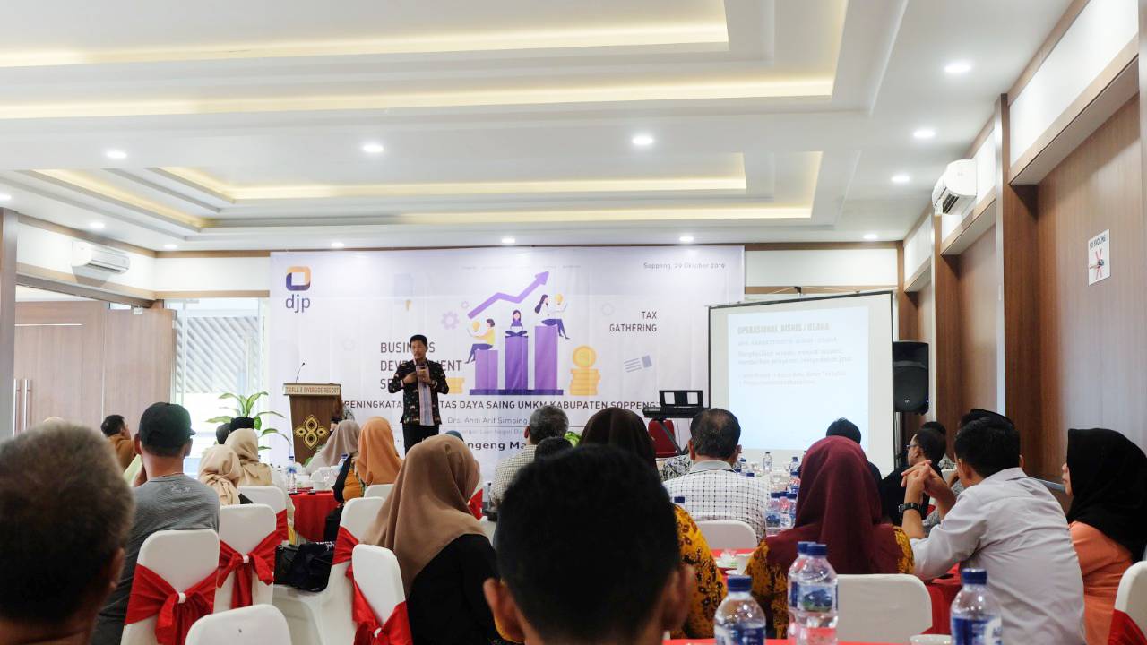 Tax Gathering dan BDS kali ini mulai dilaksanakan pukul 08.30 WITA dan berakhir pukul 12.00 WITA ditutup dengan kegiatan makan siang bersama. Adapun tema yang diusung pada acara kali ini yaitu "Meningkatkan Daya Saing UMKM Kabupaten Soppeng". Pada kesempatan ini diundang narasumber yaitu Drs. Andi Arif Simping, MM selaku Kepala Seksi Promosi Perdagangan Luar Negeri, Dinas Perdagangan Provinsi Sulawesi Selatan. Acara ini sendiri diadakan dengan tujuan untuk dapat memberikan banyak manfaat kepada para wajib pajak, khususnya di wilayah Kabupaten Soppeng.