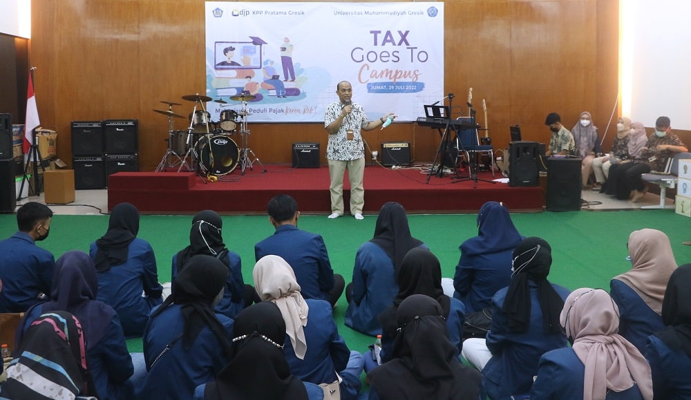 Kantor Pelayanan Pajak (KPP) Pratama Gresik berkolaborasi dengan Universitas Muhammadiyah Gresik menggelar acara Tax Goes To Campus (TGTC) bertempat di aula KPP Pratama Gresik (Jumat, 29/7). Acara tersebut dihadiri sekitar 40 mahasiswa Universitas Muhammadiyah Gresik yang terdaftar sebagai Relawan Pajak KPP Pratama Gresik.