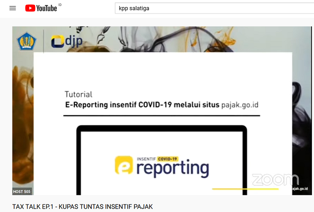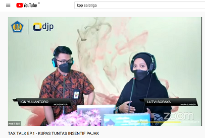 Kantor Pelayanan Pajak (KPP) Pratama Salatiga melaksanakan kegiatan Tax Talk di ruang penyuluh lantai 2 Kantor Pelayanan Pajak (KPP) Pratama Salatiga melalui Youtube Live dan Aplikasi Zoom Meeting dengan mengusung tema “Kupas Tuntas Insentif Pajak, Manfaatkan Insentifnya, Laporkan Realisasinya!” di Salatiga (Jumat, 30/7).