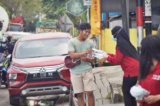 Pembagian masker gratis berjalan dengan lancar serta tetap mengutamakan keselamatan, kesehatan, dan mematuhi protokol 3M.