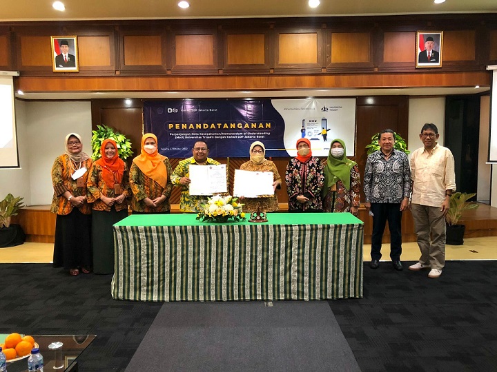 Sri Widyantui Kepala Kantor Wilayah (Kanwil) Direktorat Jenderal Pajak (DJP) Jakarta Barat dan Wakil Rektor 1 dan 4 Universitas Trisakti melakukan penandatanganan perpanjangan Nota Kesepahaman (Memorandum of Understanding/MoU) Pendirian Tax Center Universitas Trisakti di Aula Gedung S Fakultas Ekonomi dan Bisnis, Kampus A Universitas Trisakti, Grogol, Jakarta Barat (Selasa, 4/10).