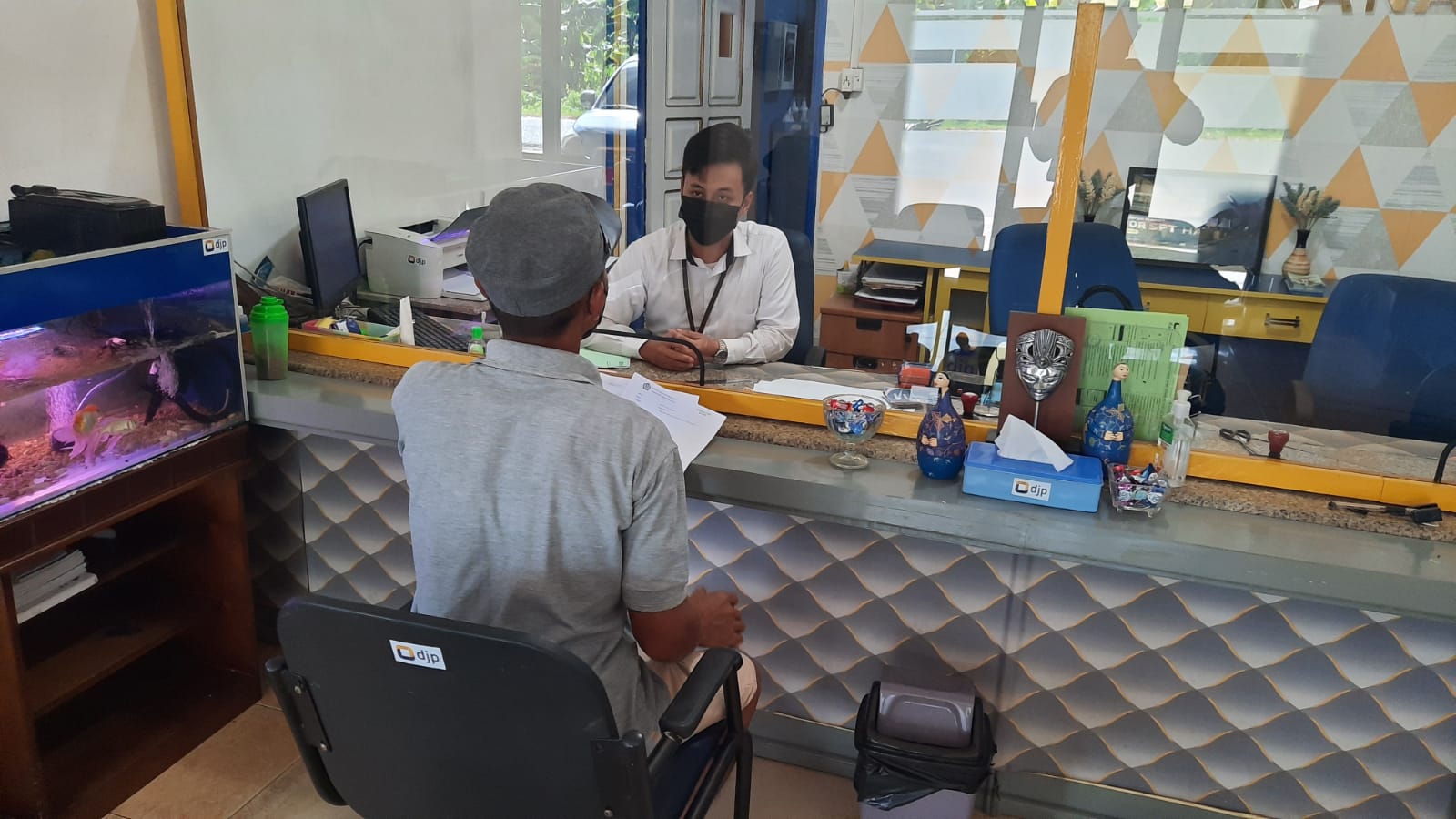 Ja’afar datang ke Kantor Pelayanan, Penyuluhan, dan Konsultasi Perpajakan (KP2KP) Ranai untuk berkonsultasi tentang hak dan kewajiban perpajakannya dengan petugas KP2KP Ranai di Kabupaten Natuna, Kepulauan Riau (Senin,19/7). Ia menceritakan, jarak yang jauh dan jalan rusak tak menghalangi niatnya untuk datang ke KP2KP Ranai.
