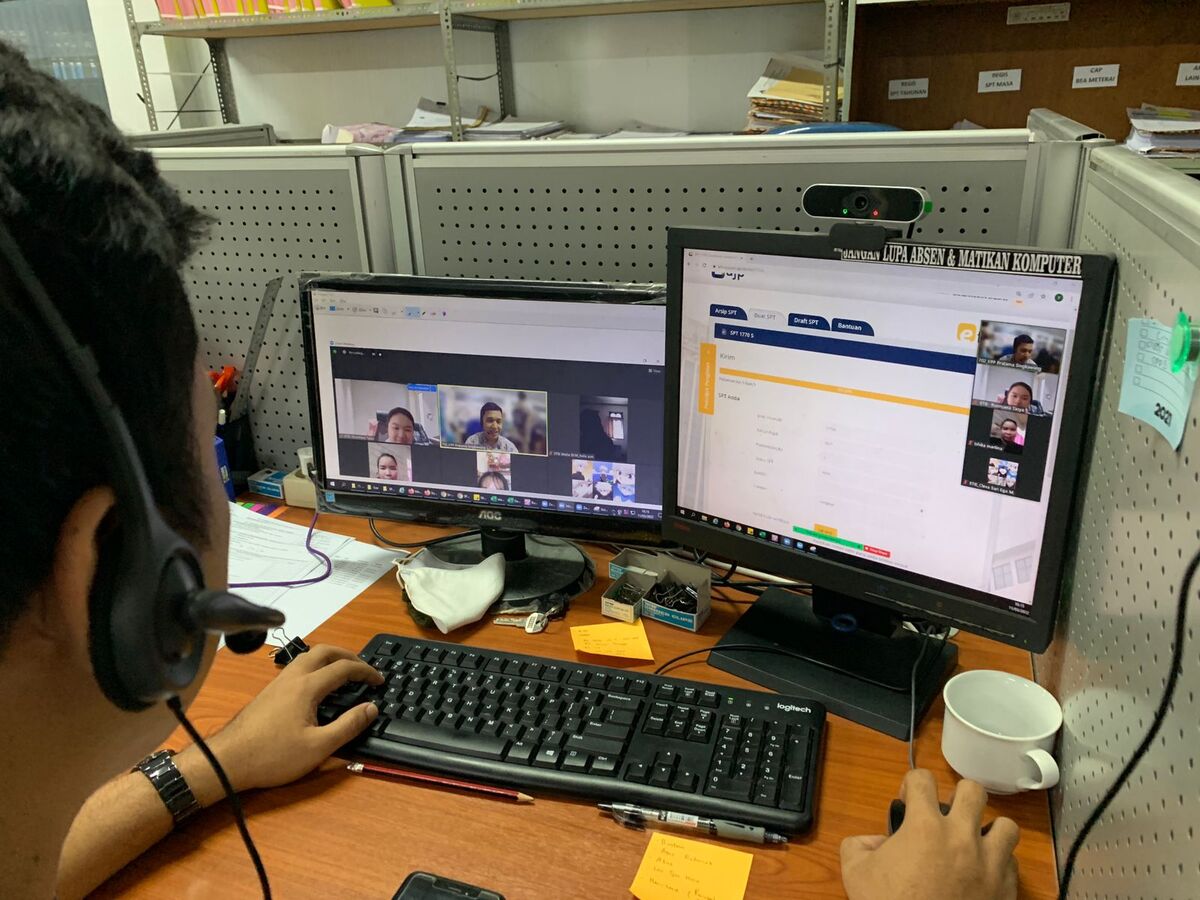 Asisten Penyuluh Pajak Kantor Pelayanan Pajak (KPP) Pratama Singkawang, Shalahudin Saesar, mengadakan pembekalan secara daring kepada delapan relawan pajak KPP Pratama Singkawang yang berasal dari Sekolah Tinggi Ilmu Ekonomi (STIE) Mulia Singkawang di Ruang Seksi Pelayanan KPP Pratama Singkawang (Jumat, 11/3).