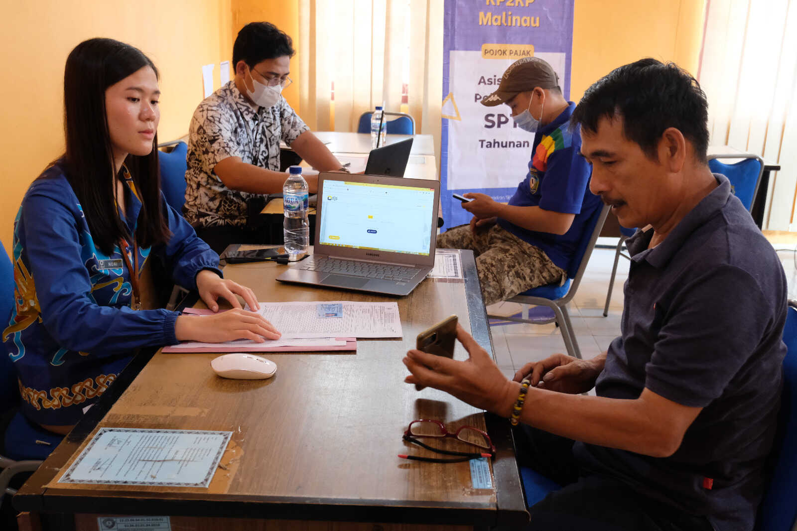 Kantor Pelayanan, Penyuluhan, dan Konsultasi Perpajakan (KP2KP) Malinau memberikan Asistensi Pelaporan Surat Pemberitahuan (SPT) Tahunan Orang Pribadi melalui e-Filing di Kantor Dinas Badan Pengelola Perbatasan Daerah (BPPD) Malinau, Jl. Pusat Pemerintahan, Desa Malinau Hulu Kec. Malinau Kota, Kab. Malinau (Jumat, 03/02).