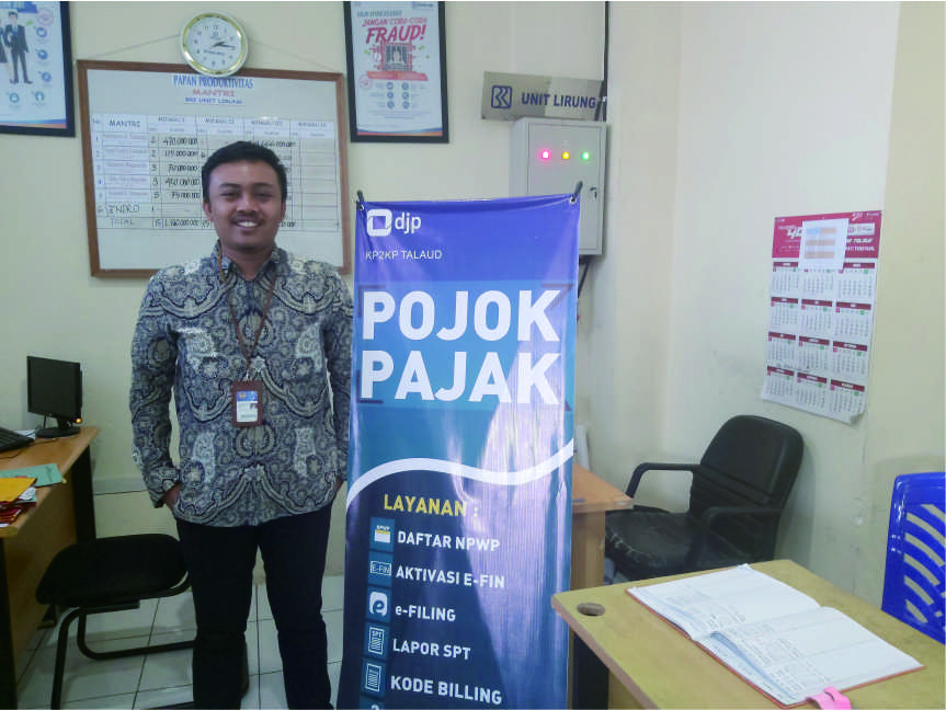 KP2KP Talaud mengadakan Pojok Pajak di Pulau Salibabu yang letaknya berbeda pulau dengan lokasi KP2KP Talaud di BRI Unit Lirung. KP2KP Talaud bekerja sama dengan BRI Unit Lirung untuk mengadakan Pojok Pajak (Selasa, 24/9).