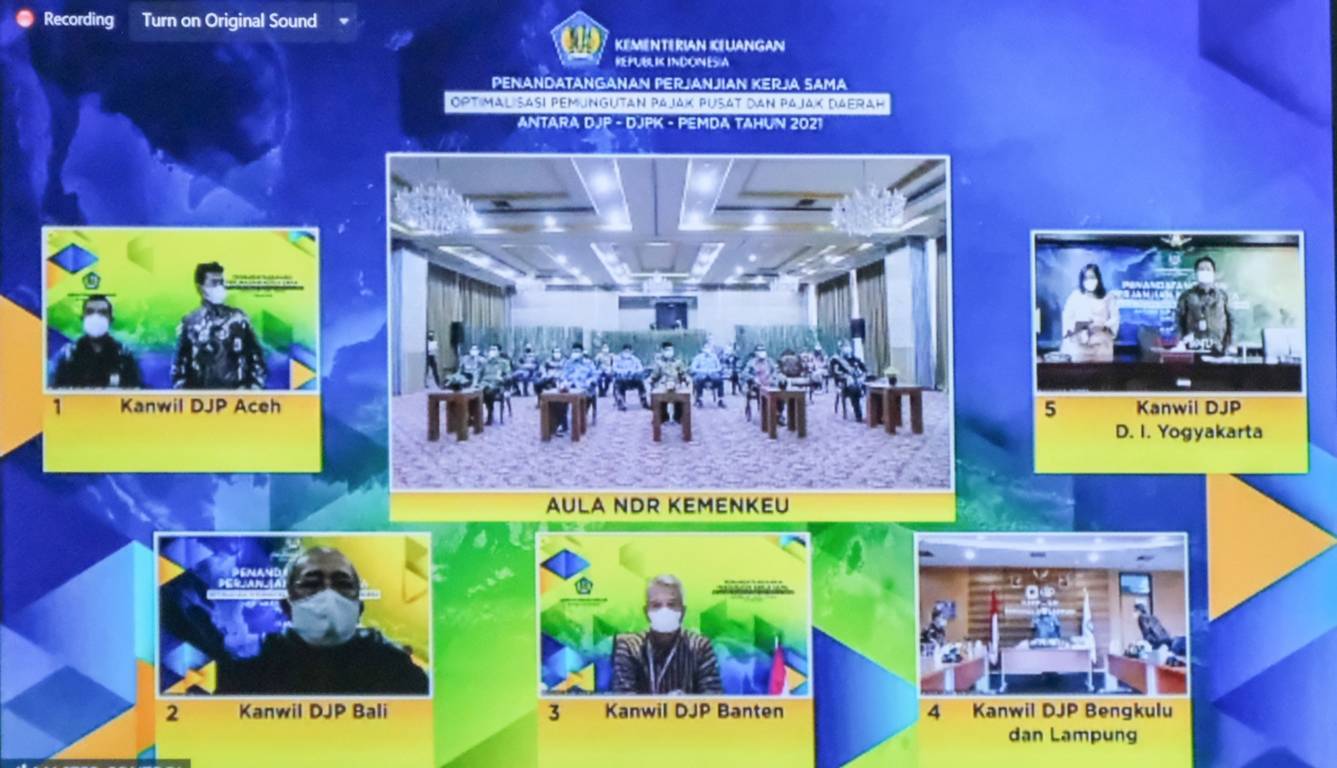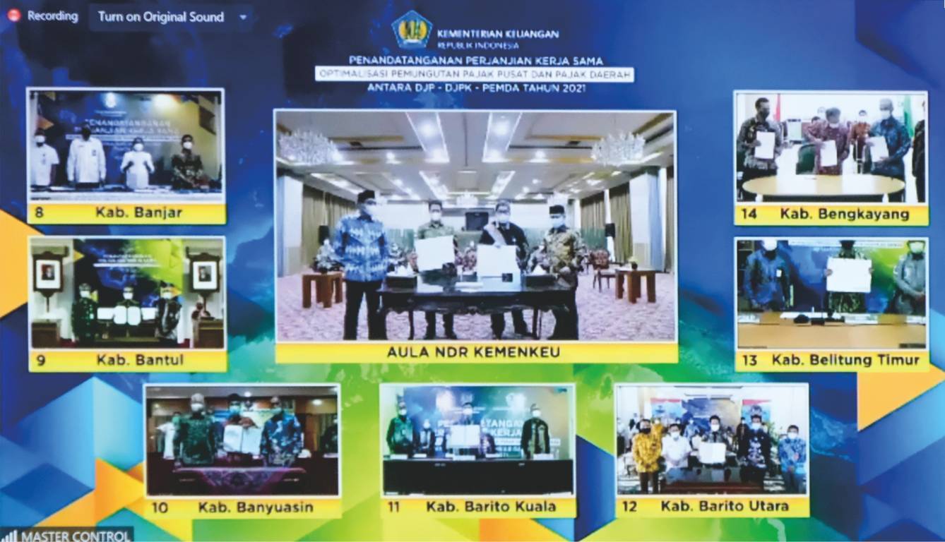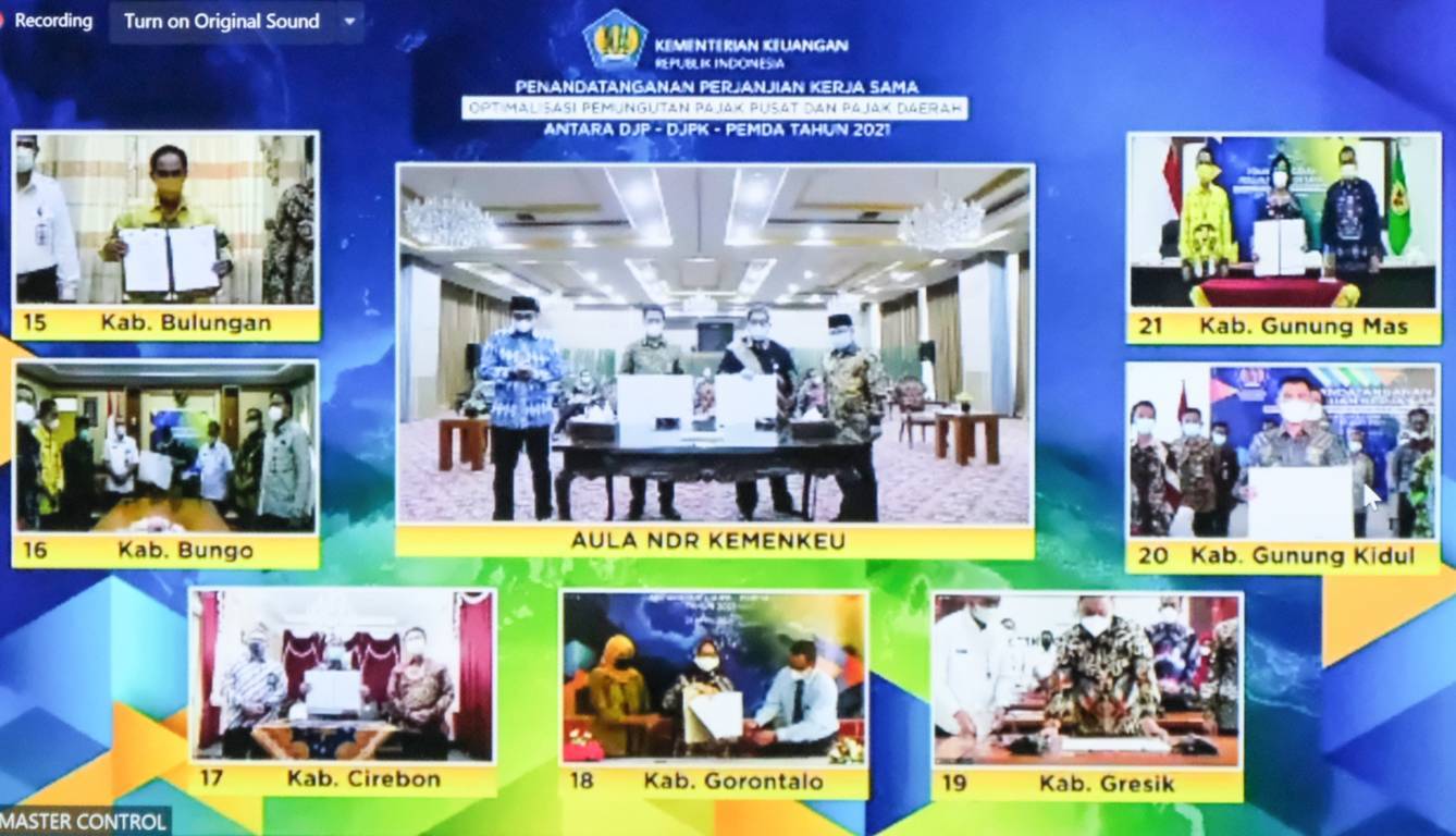 Pemerintah Kabupaten Bantul, Kulon Progo, dan Gunungkidul melakukan tanda tangan Perjanjian Kerja Sama (PKS) tentang optimalisasi pemungutan pajak pusat dan pajak daerah dengan Direktorat Jenderal Pajak dan Direktorat Jenderal Perimbangan Keuangan di D.I. Yogyakarta (Rabu, 21/4). Acara seremoni penandatanganan dilaksanakan secara daring. PKS ini bertujuan mengoptimalkan pemungutan pajak pusat dan pajak daerah.