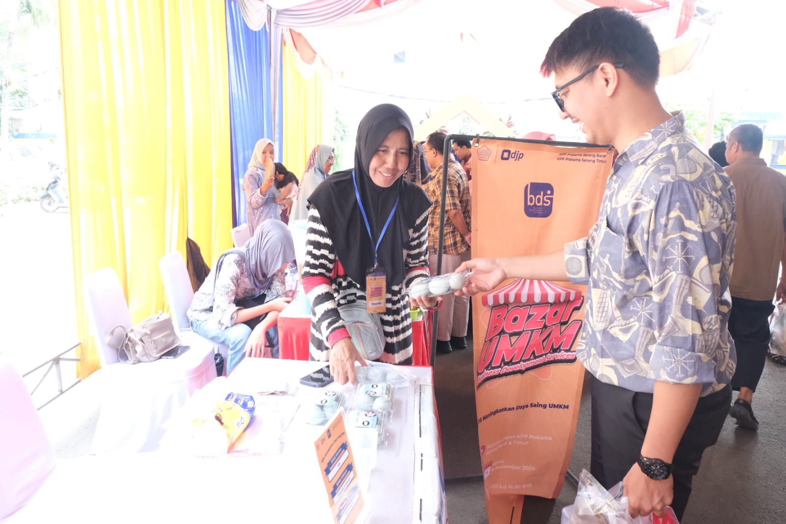 Kantor Pelayanan Pajak (KPP) Pratama Serang Barat dan KPP Pratama Serang Timur mengadakan kegiatan Business Development Service (BDS) dengan mengusung tema “BDS Meningkatkan Daya Saing UMKM”. BDS ini berupa bazar Usaha Mikro, Kecil, dan Menengah (UMKM) dan pelatihan perizinan Badan Pengawas Obat dan Makanan (BPOM). Kegiatan bazar UMKM diikuti oleh 40 UMKM binaan Dinas Koperasi, UMK, Perindustrian, dan Perdagangan Kota dan Kabupaten Serang, dengan berbagai produk mulai makanan, minuman, dan kerajinan.