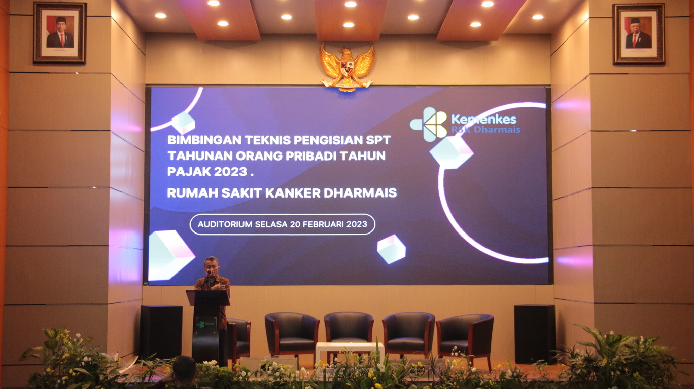 Kantor Pelayanan Pajak (KPP) Pratama Jakarta Palmerah kembali diundang oleh Rumah Sakit (RS) Kanker Dharmais untuk mengadakan Sosialisasi Pengisian SPT Tahunan Tahun 2023 di Auditorium RS Kanker Dharmais, Palmerah, Jakarta Barat (Selasa, 20/2).