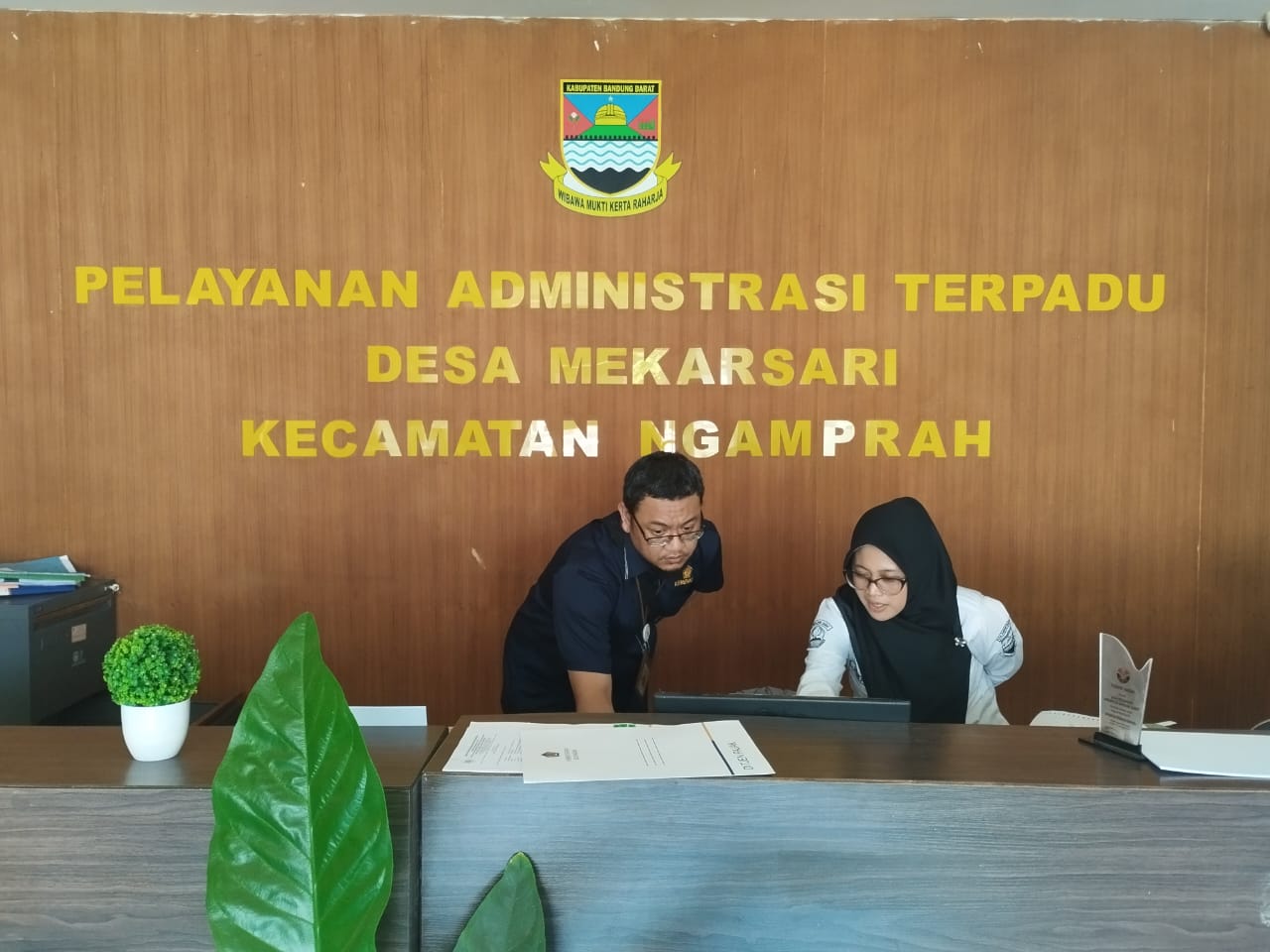Account Representative (AR) Seksi Pengawasan IV Kantor Pelayanan Pajak (KPP) Pratama Cimahi Gelar Maulana Hidayat dan Yuliyanti Christine melakukan kunjungan kerja ke Kantor Desa Mekarsari yang berada di Kecamatan Ngamprah, Kabupaten Bandung Barat (Selasa, 21/6).