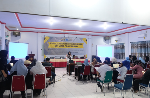 Kantor Wilayah Direktorat Jenderal Pajak Sulawesi Selatan, Barat, dan Tenggara (Kanwil DJP Sulselbartra) menjadi narasumber dalam kegiatan Bimbingan Teknis (Bimtek) Pengisian Surat Pemberitahuan (SPT) Tahunan kepada dosen dan pegawai Institut Ilmu Sosial dan Bisnis Andi Sapada (IAS) yang diselenggarakan di Aula Andi Sappada, Kota Parepare (Kamis, 27/2).