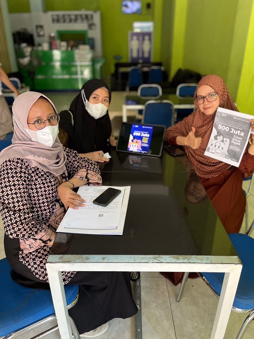 Selain itu, disampaikan juga brosur mengenai aturan terbaru pengenaan pajak bagi Wajib Pajak UMKM yang diatur dalam Undang-Undang Nomor 7 Tahun 2021 Undang-Undang Harmonisasi Peraturan Perpajakan (UU HPP). Petugas menjelaskan perubahan peraturan ini merupakan upaya untuk meningkatkan keadilan dan keberpihakan kepada masyarakat utamanya UMKM.