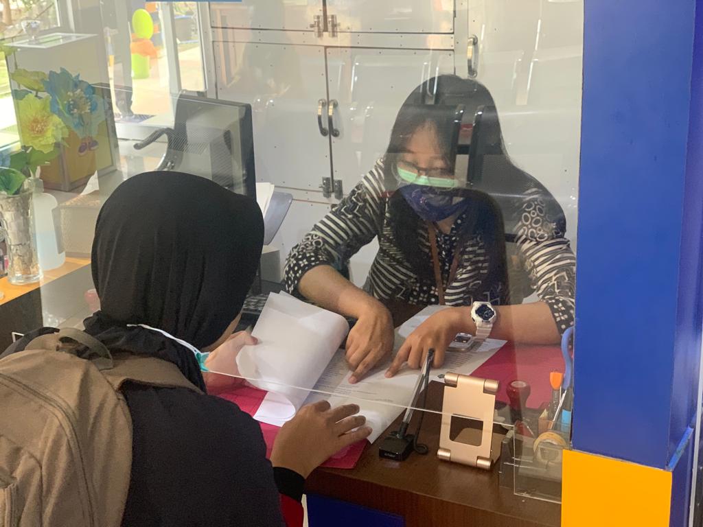 Petugas Tempat Pelayanan Terpadu (TPT) di KP2KP Sendawar melayani konsultasi kepada Wajib Pajak UMKM dengan memberikan edukasi terkait penyetoran yang seharusnya dilakukan setiap bulan sebelum tanggal 15 bulan berikutnya. Mira Henny sebagai wajib pajak meminta bantuan Cesilia, petugas TPT, untuk membuat biling dari awal tahun 2021 karena belum mengetahui kewajiban penyetoran setiap bulan.