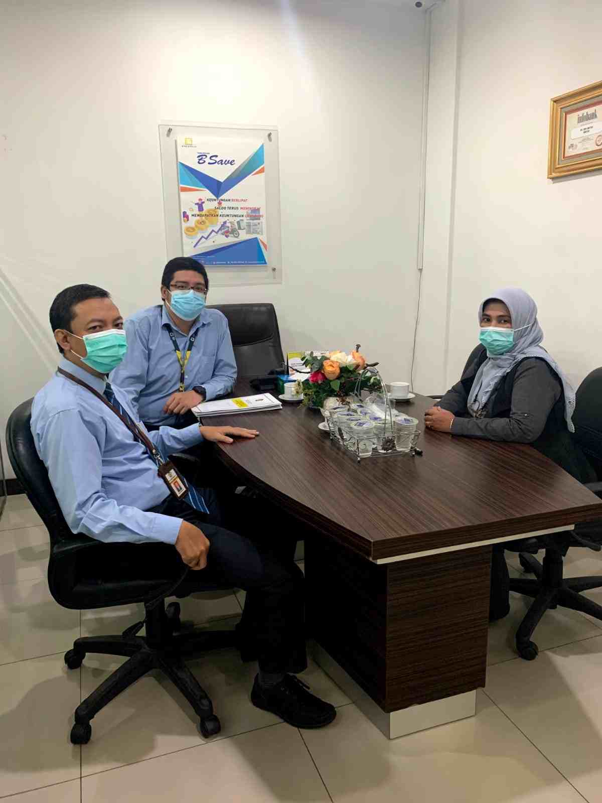 Arum yang didampingi oleh Kepala Seksi Pemeriksaan, Penilaian dan Penagihan (P3) Kokoh Getsemany Liberty, dan Jurusita Hendriko Nababan disambut hangat oleh Direktur Kepatuhan BPR Bintan Siti Harlisah.