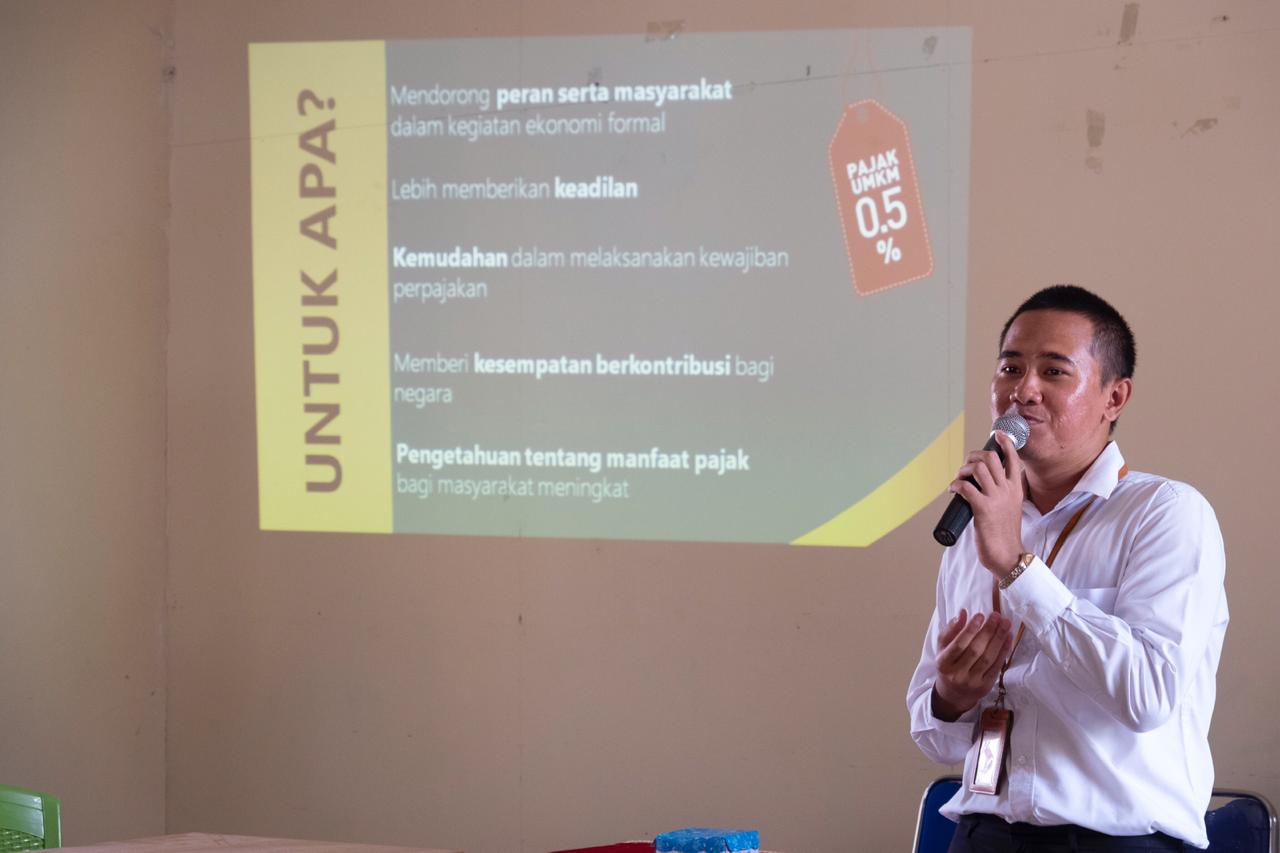 Kemudian acara dilanjutkan dengan penyampaian materi oleh Bayu Anggala Putra selaku pelaksana di KP2KP Tilamuta yang menyampaikan kewajiban wajib pajak apabila telah memperoleh Nomor Pokok Wajib Pajak (NPWP) khususnya bagi para usahawan, dimulai dari perhitungan pajaknya, penyetoran hingga pelaporan SPT Tahunan. Dalam kesempatan tersebut Angga juga menjelaskan cara membuat kode billing secara mandiri.