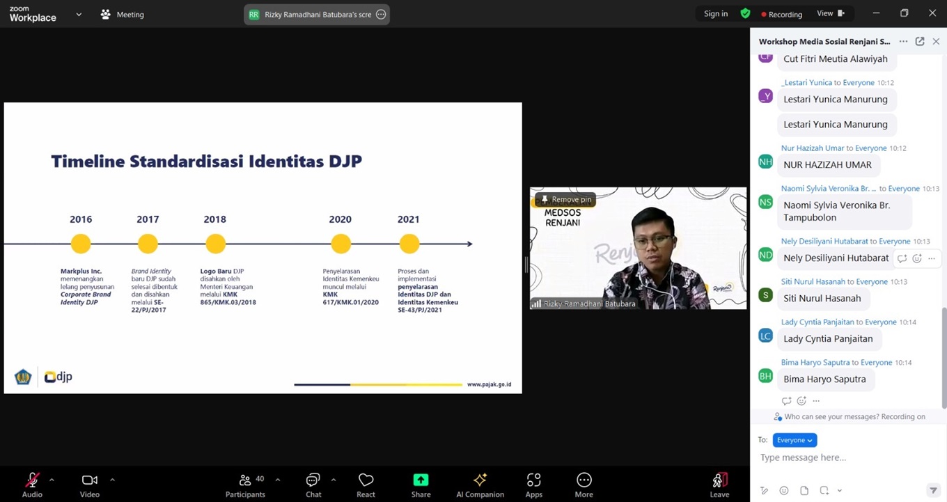 Untuk memperingati Hari Pajak Tahun 2024 dan meningkatkan kapasitas Relawan Pajak untuk Negeri (Renjani), Kantor Wilayah Direktorat Jenderal Pajak (DJP) Sumatera Utara I mengadakan workshop pembuatan konten media sosial. Kegiatan ini bertujuan untuk memperbaiki kualitas penyampaian pesan perpajakan melalui media sosial sesuai dengan standar DJP. Workshop ini dilaksanakan pada Selasa, 23 Juli 2024, dari pukul 10.00 hingga 12.00 WIB secara daring melalui Zoom Cloud Meeting, diikuti oleh seluruh Relawan Pajak untuk Negeri (Renjani) yang berada di wilayah tersebut (Selasa, 23/7).