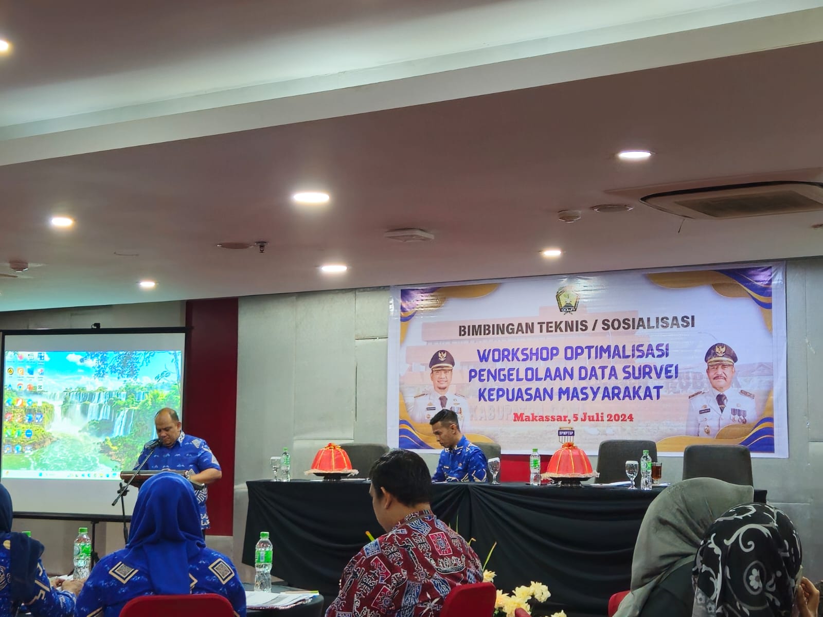 Kantor Pelayanan, Penyuluhan dan Konsultasi Perpajakan (KP2KP) Sungguminasa menghadiri undangan Workshop Optimalisasi Pengelolaan Data Survei Kepuasan Masyarakat yang dilaksanakan oleh Dinas Penanaman Modal dan Pelayanan Terpadu Satu Pintu (DPMPTSP) Kabupaten Gowa di Hotel Royal Bay Makassar, Jalan Sultan Hasanuddin No. 24, Kota Makassar (Jumat, 5/7).