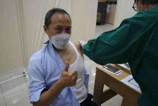 “Sangat melegakan sekali mengingat penting untuk membuat teman-teman semua karyawan bisa bekerja secara tenang dan maksimal dengan adanya Vaksin Covid-19 ini. Paling tidak sudah satu tahap ya, tinggal menunggu vaksin berikutnya 14 hari lagi, setelah itu satu minggu setelah vaksin yang kedua InshaAllah antibodi sudah terbentuk sempurna,” tutur Kepala KPP Pratama Serpong Muktia Budi Santosa.