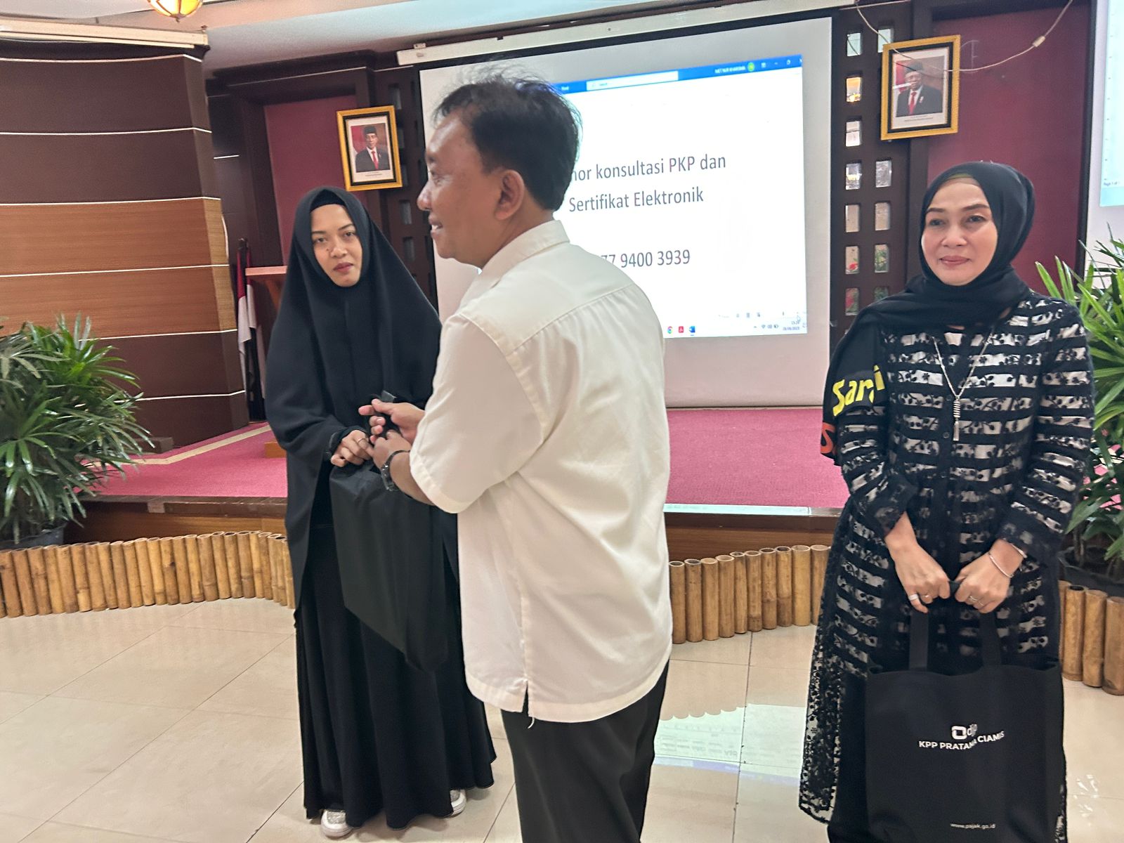 Acara dilanjutkan penyampaian paparan materi oleh Asisten Penyuluh Vera Yunita dan Riyan Yulianti. Materi yang disampaikan meliputi klasifikasi perdagangan perhiasan emas, tata cara pendaftaran, pembayaran serta pelaporan pajak.