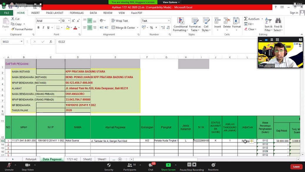 Kantor Pelayanan, Penyuluhan, dan Konsultasi Perpajakan (KP2KP) Kerobokan menggelar sosialisasi pembuatan bukti potong (bukpot) 1721 A1/A2 dan tata cara pelaporan pajak melalui e-Filing kepada bendahara (Senin, 8/2). Berlangsung secara daring melalui media Zoom Meeting yang dipandu dari gedung KP2KP Kerobokan, sosialisasi ini diikuti Bendahara Instansi pemerintah dibawah Pemkab Badung (BPKAD Kab. Badung).