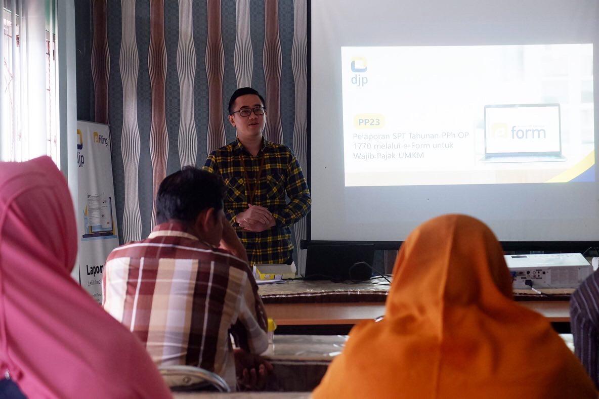 "Jadi dalam PP 23/2018 ini selain memberikan kemudahan dalam melaksanakan kewajiban perpajakan, peraturan pemerintah ini juga mengubah tarif pajak yang semula 1% kini menjadi 0,5%, perubahan tarif ini tidak lain bertujuan untuk memberikan kesempatan  para wajib pajak untuk berkontribusi kepada Negara. Jadi manfaatkan kesempatan baik ini untuk turut membangun Negeri, untuk turut mengajak UMKM lain membangun Negeri bersama-sama, karena... Pajak Kita Untuk Kita," tambahnya.