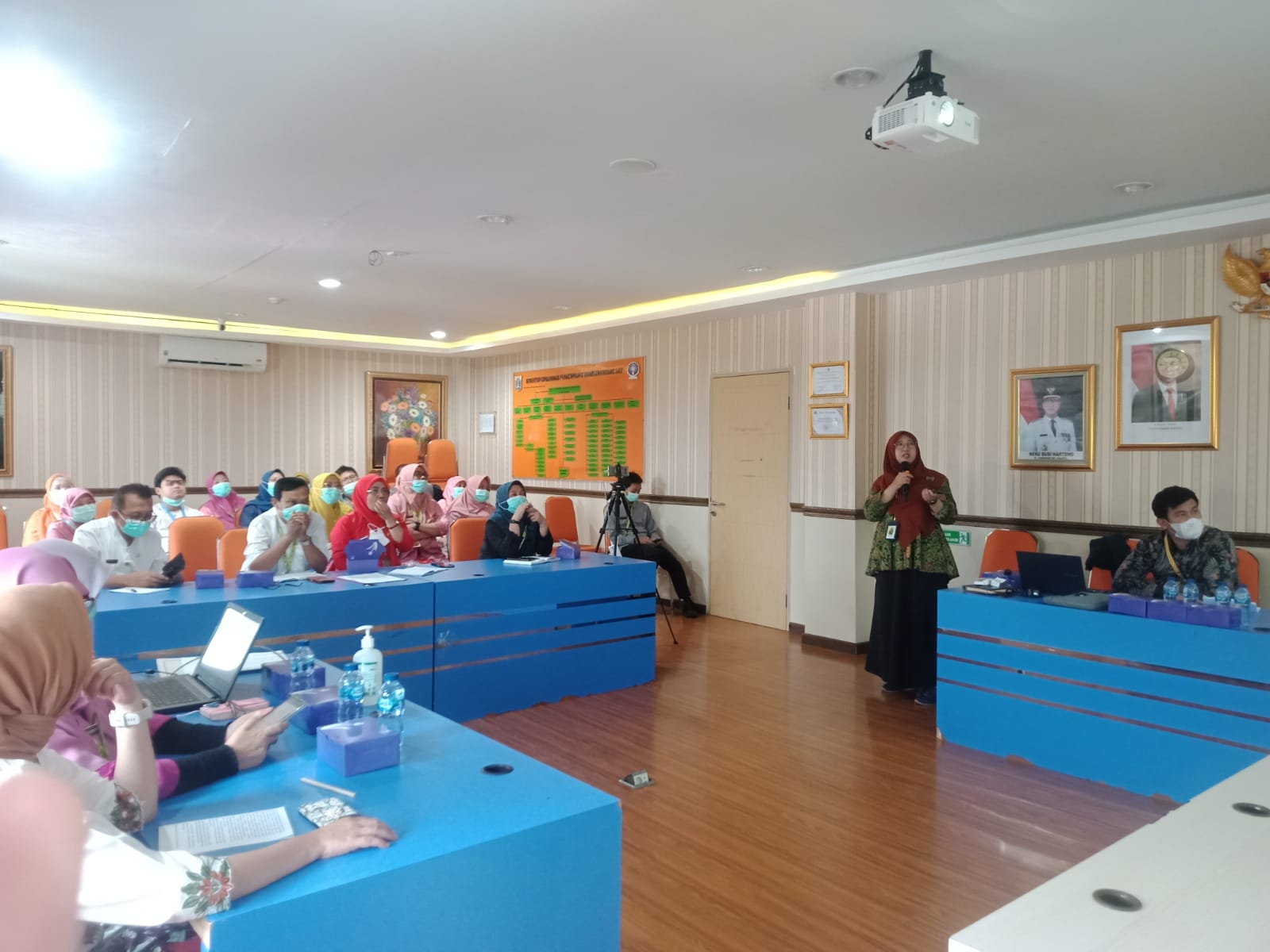Kegiatan dibuka dengan sambutan Kepala Puskesmas Kecamatan Kramat Jati Inda Mutiara dengan memberikan ucapan terima kasih kepada Tri Septianingsih Putri dan Wahyu Pebriansyah, Penyuluh KPP Pratama Jakarta Kramat Jati yang telah memenuhi undangan untuk memberikan edukasi. Selanjutnya Kepala Seksi Pengawasan IV Ira Lestari menyampaikan peran penting pemenuhan kewajiban perpajakan oleh instansi pemerintah secara benar dan tepat waktu.