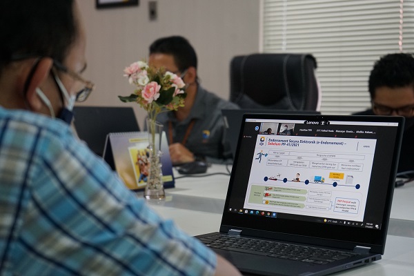 Kepala Kantor Pelayanan Pajak (KPP) Madya Batam Achmad Amin dan Kepala Seksi Pengawasan III KPP Madya Batam Fathul Huda memaparkan proses bisnis KPP Madya Batam dalam rangka pelaksanaan Program Secondment Direktorat Jenderal Pajak dan Direktorat Jenderal Bea dan Cukai Wilayah Kepulauan Riau (Kamis, 15/7). Kegiatan ini digelar secara daring melalui Zoom Cloud Meeting di ruang rapat KPP Madya Batam, Kota Batam.