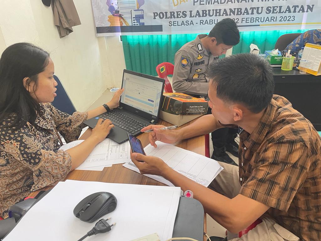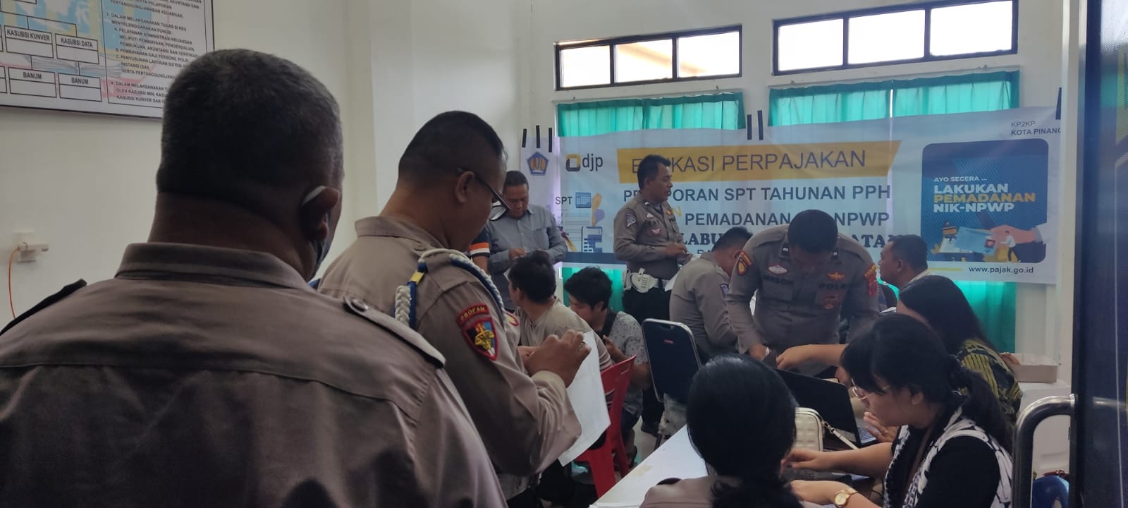 Kantor Pelayanan Penyuluhan dan Konsultasi Perpajakan (KP2KP) Kota Pinang dan Tim Penyuluh Kantor Pelayanan Pajak (KPP) Pratama Rantau Prapat mengadakan edukasi perpajakan terkait pemadanan NIK menjadi NPWP dan SPT Tahunan PPh di Kepolisian Resort (Polres) Labuhanbatu Selatan (Selasa, 21/2).