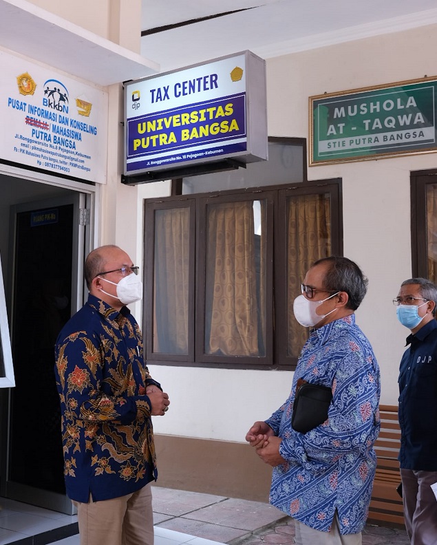 Kepala Kantor Wilayah (Kanwil) DJP Jawa Tengah II Slamet Sutantyo melakukan kunjungan kerja ke Universitas Putra Bangsa (UPB) Kebumen di Kebumen (Kamis, 26/8). Kunjungan ini salah satunya dilaksanakan untuk Tax Center UPB. Tercatat, Tax Center UPB telah menjadi mitra Kanwil DJP Jawa Tengah II dalam mengedukasi masyarakat di bidang perpajakan selama 2 tahun sejak tahun 2019. Selain mengedukasi, Tax Center UPB juga menjadi sarana informasi seputar perpajakan di Kebumen.