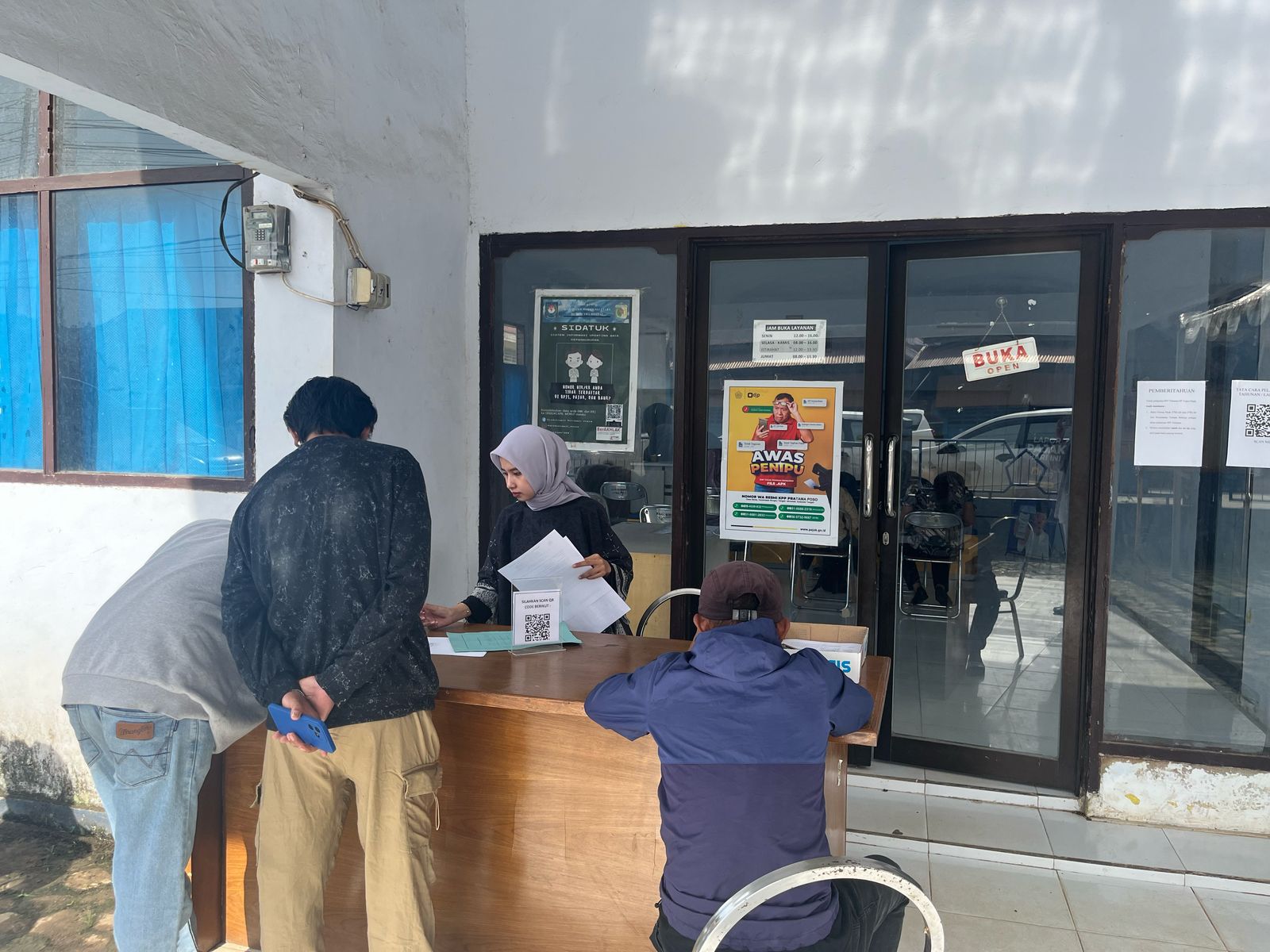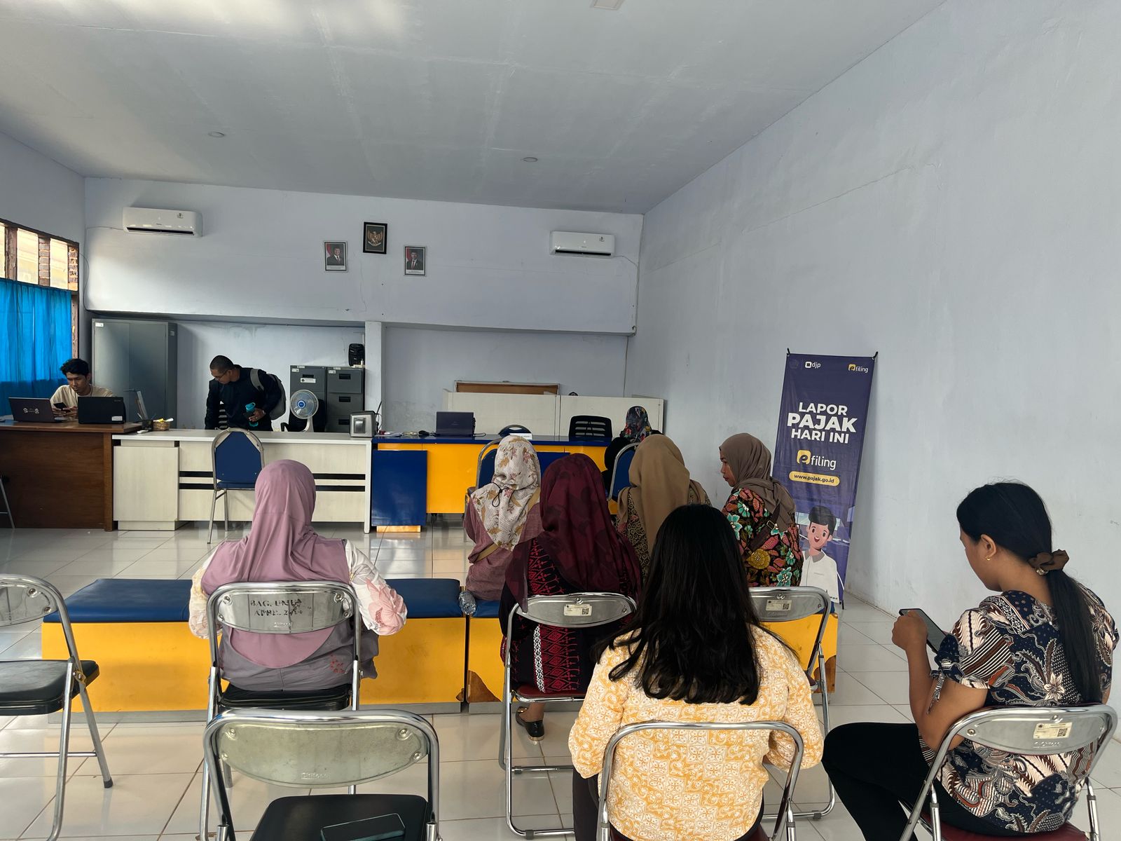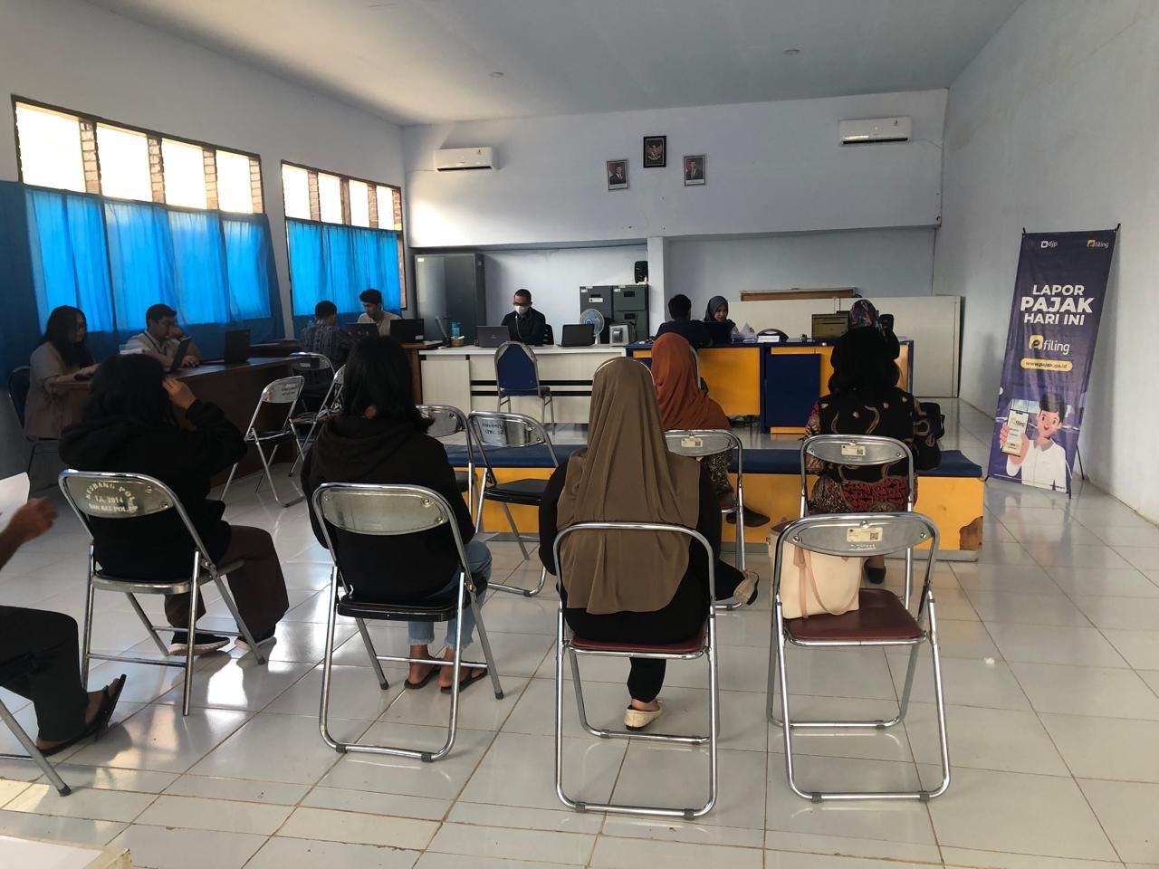 Pos Pembantu Pajak Kolonodale di Kelurahan Petasia, Morowali Utara ramai disambangi wajib pajak yang bekerja sebagai Aparatur Sipil Negara (ASN) dan Pegawai Pemerintah dengan Perjanjian Kerja (PPPK) dalam rangka asistensi pelaporan SPT Tahunan (Kamis, 20/2).