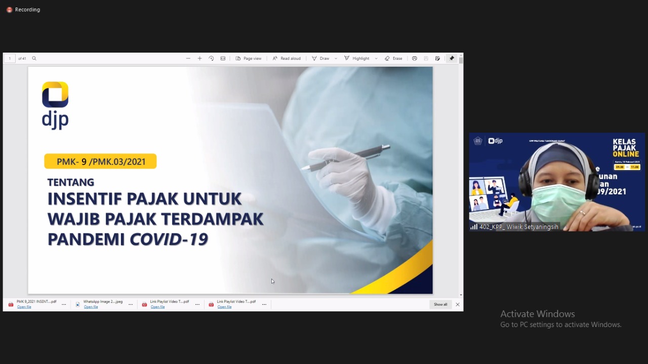KPP Pratama Tangerang Barat kembali mengadakan Kelas Pajak dengan materi tatacara pengisian SPT Tahunan bersama wajib pajak UMKM melalui aplikasi zoom cloud meeting yang berlangsung selama dua jam bersama narasumber dua Account Representative KPP Pratama Tangerang Barat, yakni Indra Kharisma dan Wiwik Setyaningsih (Kamis,18/2).