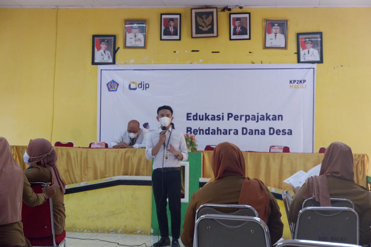 Kantor Pelayanan, Penyuluhan, dan Konsultasi Perpajakan (KP2KP) Malili mengadakan kegiatan Sosialisasi Perpajakan terkait Pengelolaan Dana Desa (Senin, 19/4). Acara yang diadakan di ruang aula Kantor Kecamatan Malili ini diikuti oleh bendahara dari 14 desa se-Kecamatan Malili, Kabupaten Luwu Timur.