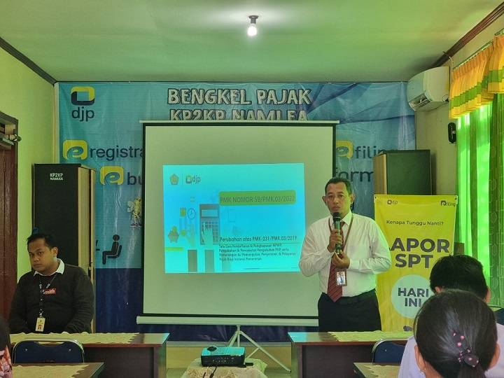 Acara dibuka oleh Kepala KP2KP Namlea Syarifudin dan dilanjutkan dengan penyampaian materi sosialisasi. “PMK-59 tahun 2022 ini mengatur pengecualian pemotongan dan/atau pemungutan pajak oleh Instansi Pemerintah untuk transaksi yang dilakukan melalui Sistem Informasi Pengadaan Pemerintah. Selain itu, PMK-59 ini juga mengatur perlakuan pemungutan pajak untuk transaksi yang menggunakan kartu kredit pemerintah bagi pemerintah daerah dan pemerintah desa menjadi sama dengan perlakuan untuk transaksi yang menggunakan kartu kredit pemerintah pusat,” jelas Syarifudin.