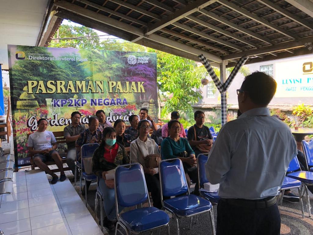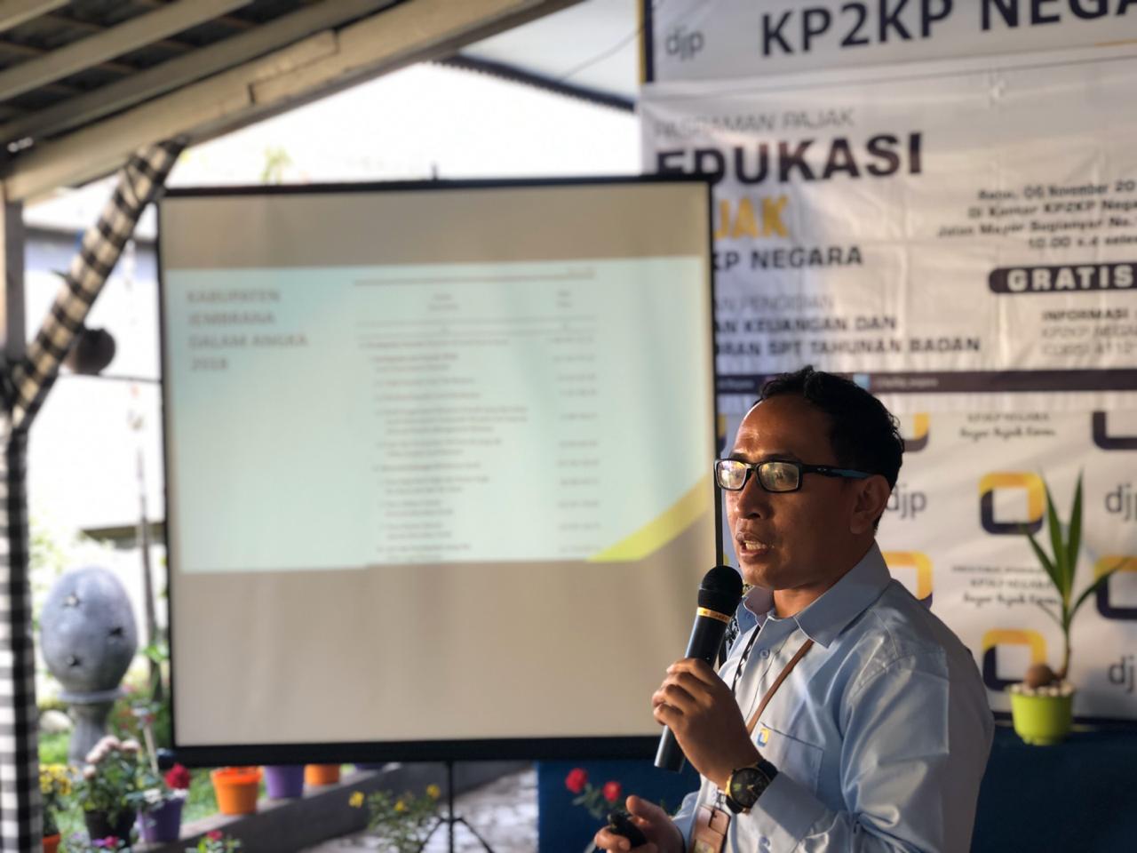 Setelah sukses melaksanakan edukasi perpajakan bagi wajib pajak badan bagian I, Kantor Pelayanan, Penyuluhan dan Konsultasi (KP2KP) Negara kembali mengadakan edukasi perpajakan wajib pajak badan bagian II. Acara edukasi perpajakan kali ini diikuti oleh Wajib Pajak Badan yang belum mengikuti edukasi perpajakan bagian I bertempat di Taman Belakang KP2KP Negara (Rabu, 6/11).