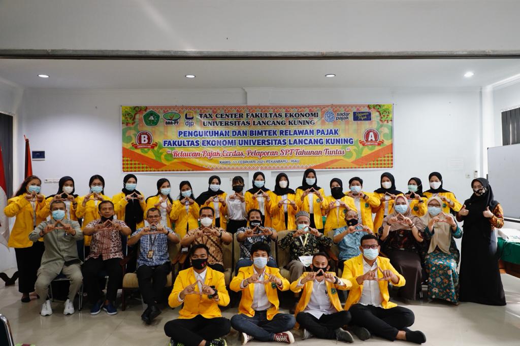 Kantor Wilayah DJP Riau melakukan Pengukuhan dan Bimbingan Teknis Relawan Pajak tahun 2021 terhadap mahasiswa dan mahasiswi dari Universitas Lancang Kuning (UNILAK) di Fakultas Ekonomi Universitas Lancang Kuning, Riau (Kamis, 11/2). Acara diikuti oleh 20 orang Mahasiswa. Asprilantomiardiwidodo selaku Kepala Bidang Penyuluhan Pelayanan dan Hubungan Masyarakat (P2HuMas) hadir untuk melakukan pengukuhan Relawan Pajak dari UNILAK.