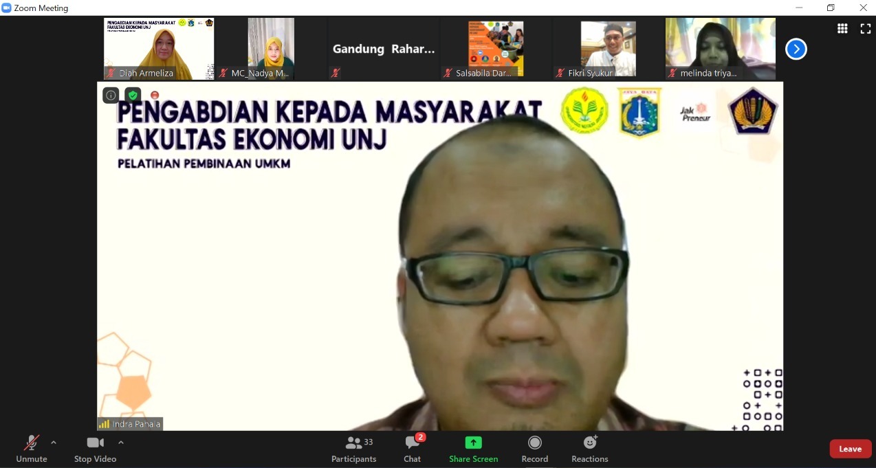 Universitas Negeri Jakarta (UNJ) bekerja sama dengan Kantor Wilayah DJP Jakarta Timur menyelenggarakan kegiatan pengabdian masyarakat berupa pelatihan dan pembinaan kepada pelaku Usaha Mikro, Kecil, dan Menengah (UMKM) melalui aplikasi Zoom di Jakarta (Selasa, 28/7).