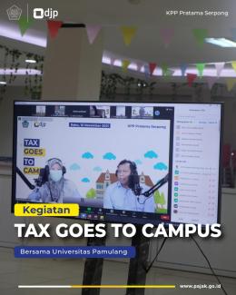 KPP Pratama Serpong baru saja menyelenggarakan kegiatan Tax Goes to Campus 2021 dengan tema “Generasi Muda Sadar Pajak, Pahlawan Masa Kini” pada Rabu (10/11). Berbeda dengan Tax Goes to School yang diadakan minggu sebelumnya, acara ini khusus ditujukan untuk peserta dari jenjang pendidikan akademi, universitas atau perguruan tinggi di sekitar Kota Tangerang Selatan.