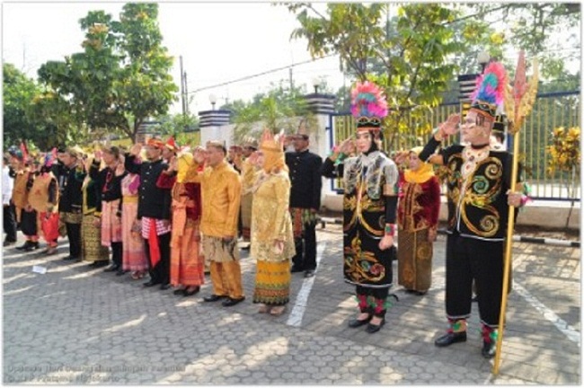 Dengan mengusung tema peringatan Hari Oeang Republik Indonesia ke-73 yaitu "Maju Bersama Menghadapi Tantangan", para peserta upacara mengenakan pakaian adat/nusantara yang mewakili adat dari Indonesia Bagian Barat, Indonesia Bagian tengah, dan Indonesia Bagian Timur untuk menunjukkan rasa nasionalisme.