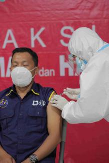Kantor Pelayanan Pajak (KPP) Pratama Karawang Utara bekerja sama dengan Dinas Kesehatan Kabupaten Karawang melakukan vaksinasi Covid-19 pada seluruh pegawai KPP Pratama Karawang Utara (Kamis, 4/3). Kegiatan ini dilaksanakan di ruang aula RSIA dr. Djoko Pramono, Kabupaten Karawang.