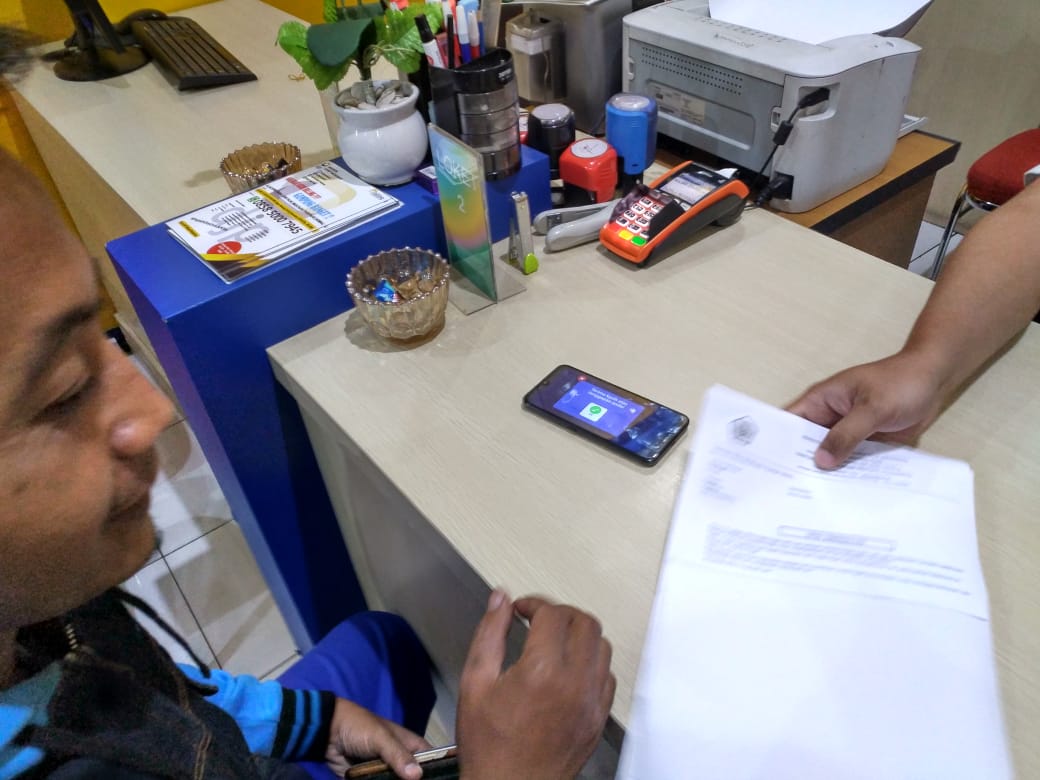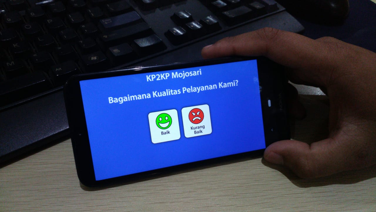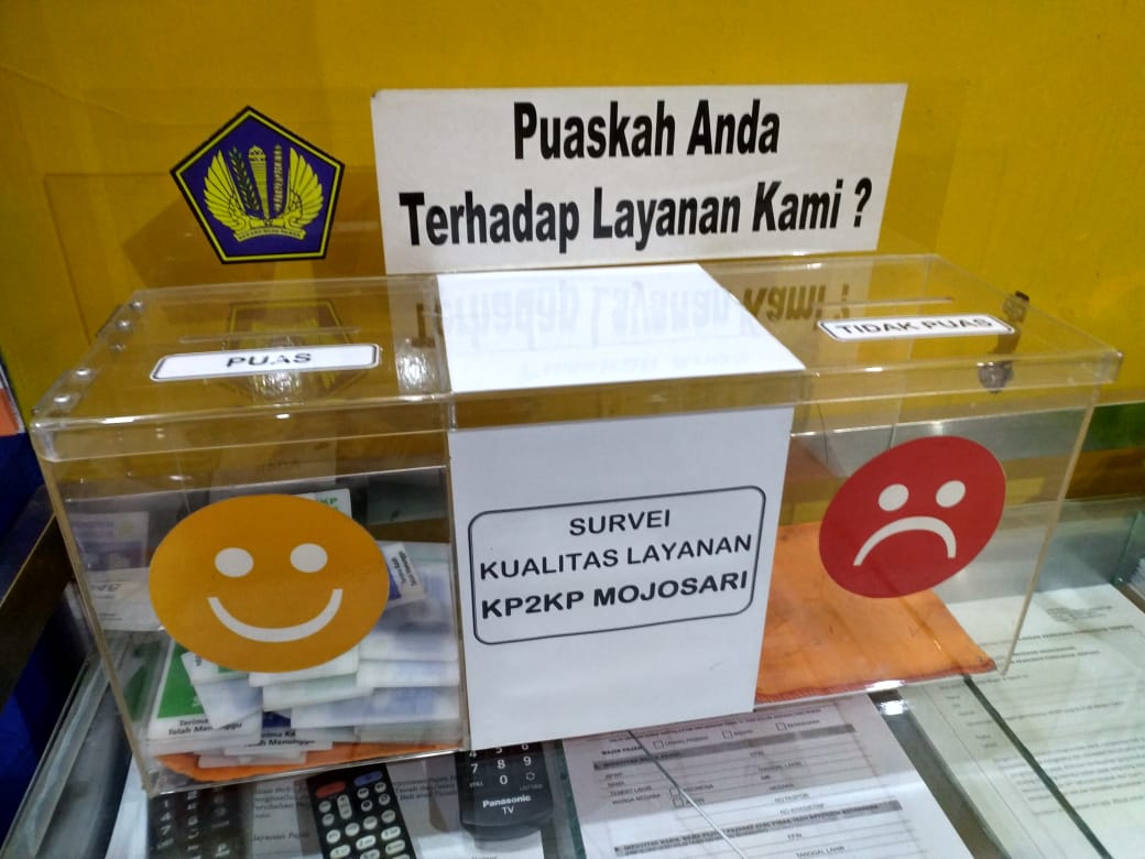 Para petugas petugas pajak mulai melaksanakan survei kepuasan layanan secara elektronik di loket Tempat Pelayanan Terpadu (TPT) KP2KP Mojosari (Kamis, 5/3). Selama ini, survei dilaksanakan secara manual. Salah satu kelemahan survei secara manual adalah seringnya petugas lupa memberikan koin survei kepada wajib pajak.