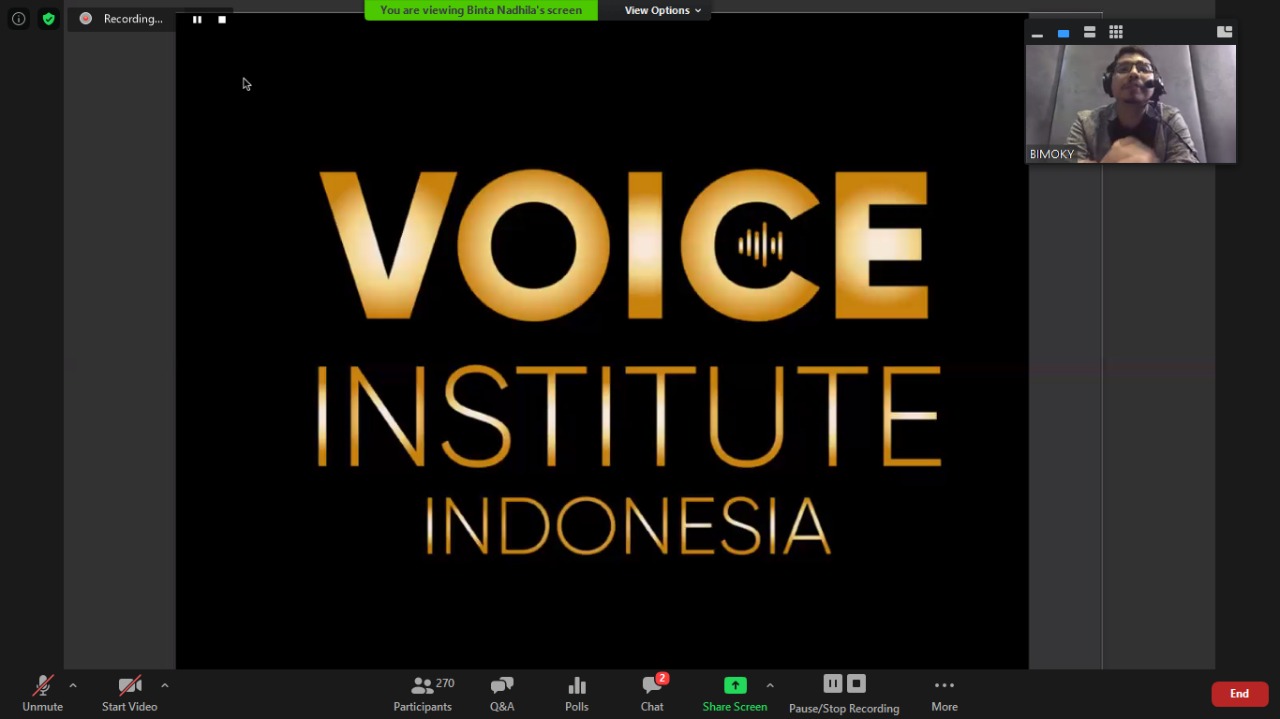 Bimo Ky dan Binta (Voice of Institute Indonesia) tampil memukau peserta dengan intonasinya yang mumpuni bak bintang iklan dan penyiar radio yang memang sudah menjadi profesinya sehari-hari. Setelah melakukan beberapa simulasi singkat tentang bagaimana caranya menyampaikan materi dengan intonasi yang tepat, Bimo Ky berpesan kepada peserta untuk tidak berkecil hati, " Perbanyak latihan maka nanti akan semakin luwes dalam menyampaikan materi."