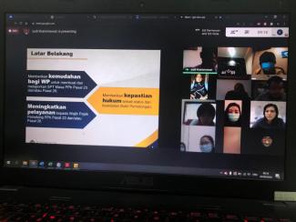 Dampak pandemik Covid-19 selain mengubah cara Kantor Pelayanan Pajak (KPP) dalam melayani, juga mengubah cara dalam memberikan sosialisasi kepada wajib pajak. Walaupun sosialisasi tatap muka tidak dapat dilaksanakan, pegawai KPP tetap mengedukasi dengan mengadakan sosialisasi perpajakan secara daring. Sosialisasi secara daring menjadi tren baru dalam dunia pelayanan publik, termasuk Kantor Pelayanan Pajak (KPP) Madya Denpasar yang mengadakan kegiatan sosialisasi daring kepada wajib pajak melalui Google Meet di Denpasar (Rabu, 26/8).