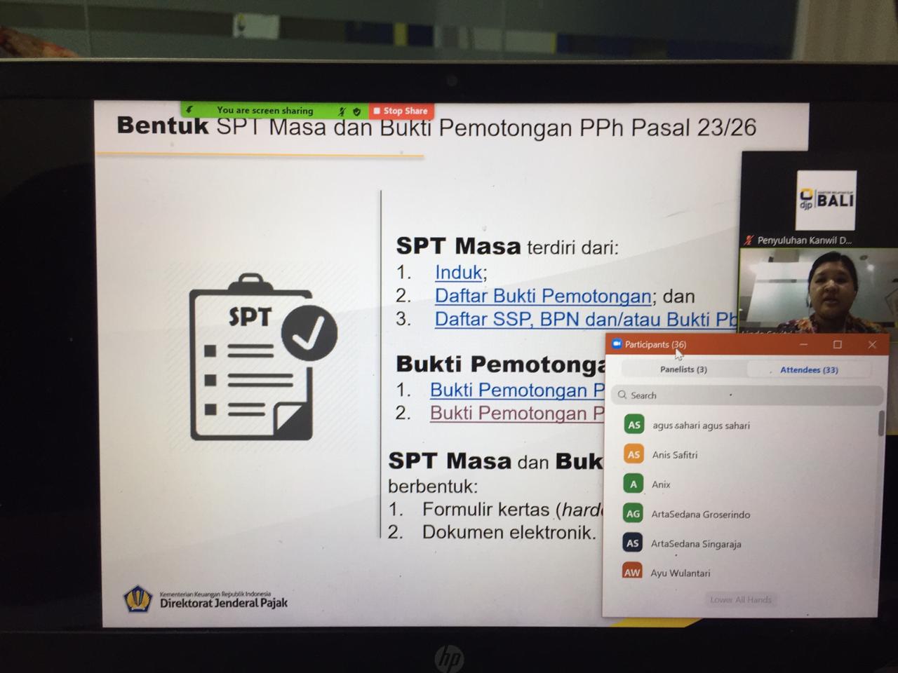 KPP Pratama Singaraja mengadakan sosialisasi e-Bupot 23/26 secara daring melalui aplikasi zoom di Singaraja (Kamis, 16/7). Acara ini dimulai pukul 13.30 WITA dan diikuti oleh 38 wajib pajak yang telah berstatus PKP dan wajib pajak menyambut antusias kegiatan ini.
