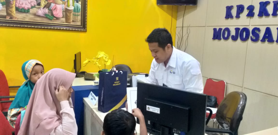 Beberapa Wajib Pajak Usahawan yang menerima SMS Blast mendatangi KP2KP Mojosari untuk melunasi tunggakan pajaknya (Senin, 20/1). SMS Blast dan WhatsApp Blast ini dikirimkan oleh KP2KP Mojosari untuk mengingatkan wajib pajak akan tunggakan pajak yang menjadi kewajiban perpajakannya. Dengan bantuan petugas Tempat Pelayanan Terpadu (TPT), wajib pajak tersebut melakukan pembayaran tunggakan pajak melalui Mini ATM.