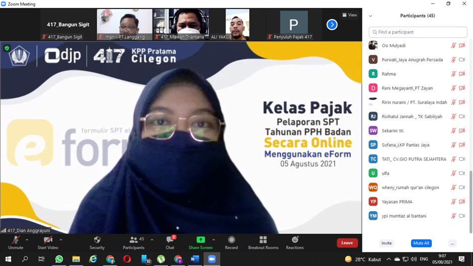 KPP Pratama Cilegon kembali membuka kelas pajak daring untuk pelaporan SPT Tahunan PPh Wajib Pajak Badan Usaha di Cilegon, Banten (Kamis, 5/8).