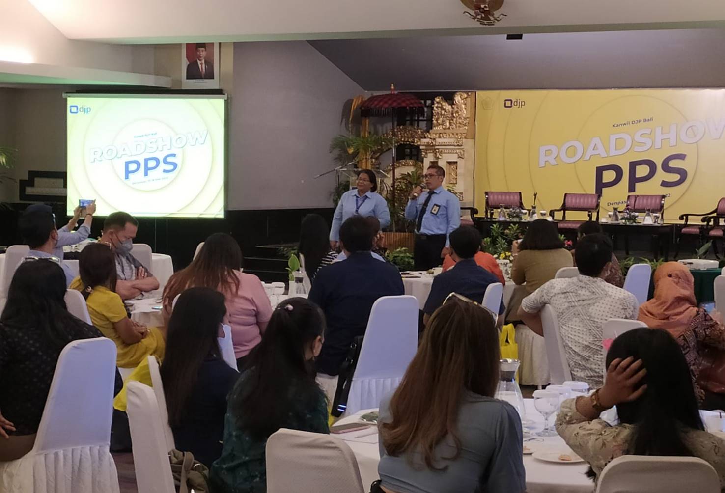 Kegiatan road show PPS dibuka oleh Kepala Kanwil DJP Bali Anggrah Warsono yang menjelaskan tujuan dari PPS kepada peserta. Acara dilanjutkan dengan paparan dari para nara sumber yang menjelaskan mengenai ketentuan PPS. Beberapa peserta menyampaikan pertanyaan dan dijelaskan oleh para nara sumber secara lugas.