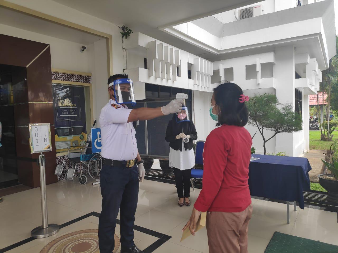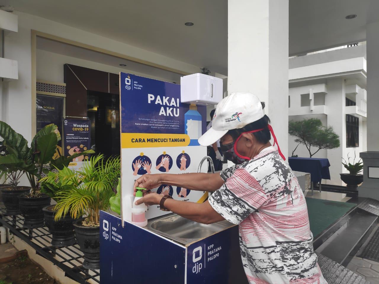Sebelum memasuki gedung kantor, wajib pajak diimbau untuk mencuci tangan terlebih dahulu di bilik cuci tangan yang telah disediakan. Setelah itu, dilakukan pengecekan suhu tubuh dengan menggunakan thermogun, apabila suhu tubuh melebihi 38°C, wajib pajak tidak diperbolehkan masuk kedalam gedung kantor. Adapun saat layanan tatap muka berlangsung, wajib pajak dan petugas Tempat Pelayanan Terpadu (TPT) berinteraksi tanpa adanya kontak fisik secara langsung.