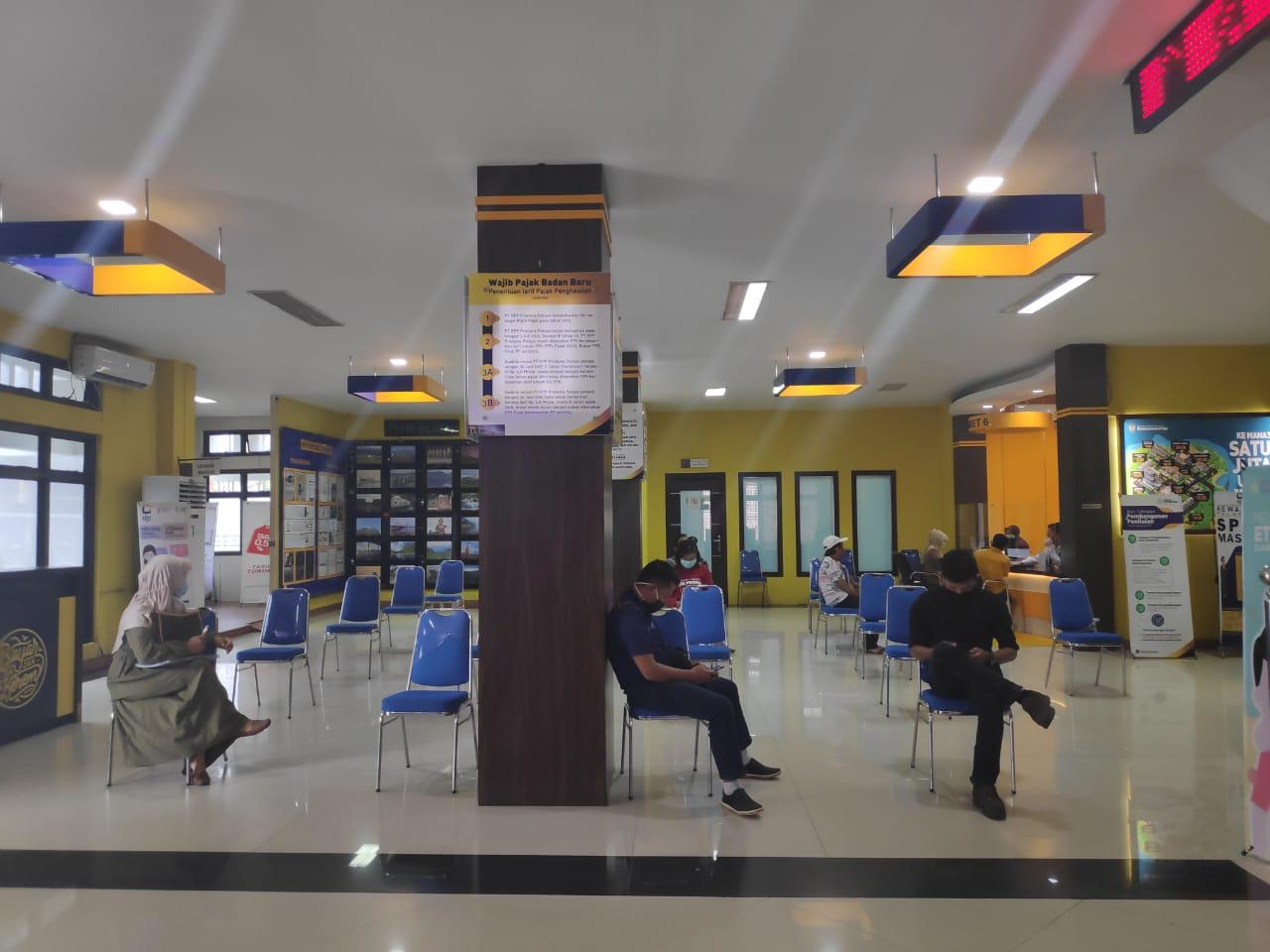 Hari pertama dibukanya layanan tatap muka oleh Kantor Pelayanan Pajak (KPP) Pratama Palopo untuk wajib pajak Kota Palopo di era kenormalan baru berlangsung tertib dan kondusif (Senin, 15/6). Protokol kesehatan diterapkan dalam pelaksanaan layanan tatap muka tersebut, wajib pajak pun diharuskan untuk mengenakan masker selama berada di lingkungan KPP Pratama Palopo.