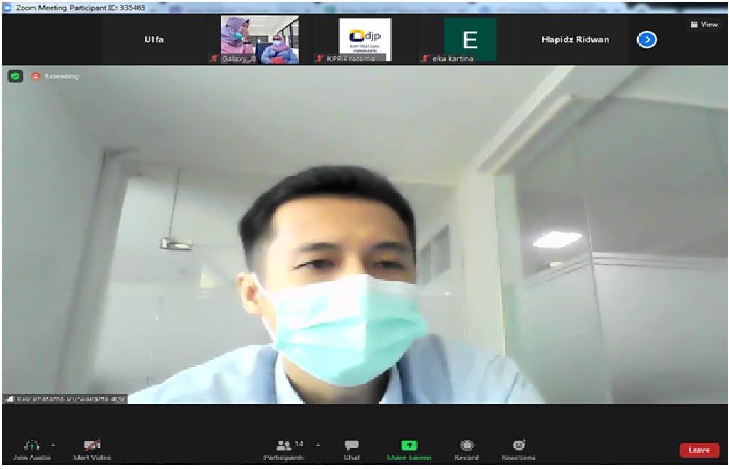 Kantor Pelayanan Pajak (KPP) Pratama Purwakarta terus berupaya meningkatkan kepatuhan wajib pajak dengan gencar melakukan kegiatan kelas pajak secara daring. Kegiatan yang dilakukan melalui aplikasi zoom ini dipandu oleh tim penyuluh perpajakan Kantor Pelayanan Pajak (KPP) Pratama di ruang rapat Kantor Pelayanan Pajak (KPP) Pratama Purwakarta, Purwakarta (Rabu, 21/4).